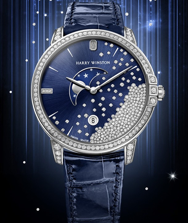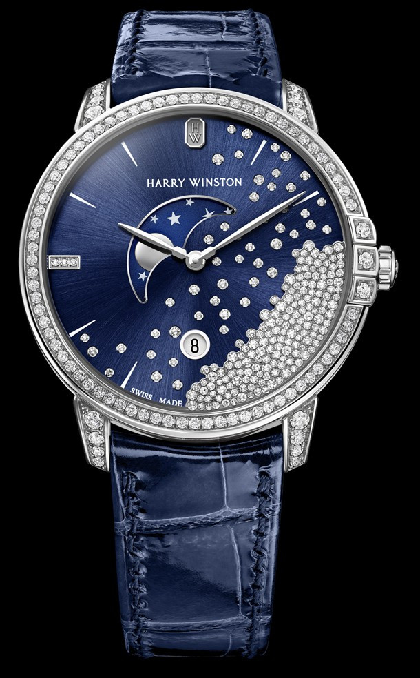 Швейцарские часы Harry Winston Avenue Avenue Midnight Moon Phase Diamond Drops 39 mm
