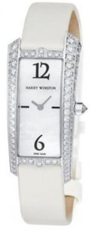 Часы Harry Winston Avenue Traffic размером 26 x 46.1 мм представлены в корпусе из белого золота 18к с водонепроницаемостью до 30 метров. Корпус часов инкрустирован белыми бриллиантами. Белый жемчужный циферблат оформлен в минималистском стиле. Кварцевый механизм поддерживает функции индикации часов и минут. Часы комплектуются сатиновым ремешком с золотой вставкой.