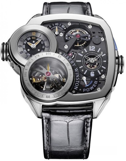Harry Winston представляет шестую версию часов с турбийоном – самой знаменитой из сложных часовых функций. Под сапфировым стеклом на черном циферблате отображаются часы, минуты, секунды и запас хода. Крупная каретка турбийона находится на 7-ми часах. Часы комплектуются механизмом с ручным заводом, Калибр HW4701. Корпус размером 55 х 49 мм изготовлен из белого золота 18к. Водонепроницаемость составляет 30 метров. Модель поставляется на ремешке из кожи аллигатора, часы выпущены ограниченной серией 20 штук.