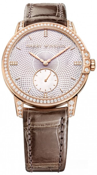 Часы Harry Winston Midnight Infinity Automatic 36mm выпущены в корпусе из розового золота 18к, размером 36 мм и водонепроницаемостью 30 м. Внутри корпуса установлен автоматический механизм, Калибр HW2006. На белом жемчужном гильошированном циферблате с белыми бриллиантами отображаются часы, минуты, секунды. Запас хода 72 часа. Часы комплектуются ремешком из кожи аллигатора с вставкой из розового золота 18к. Корпус инкрустирован белыми бриллиантами.