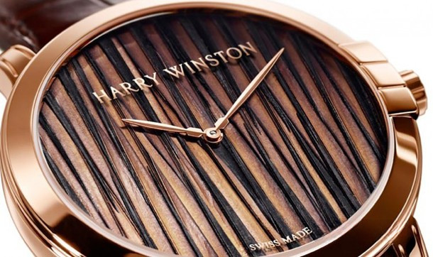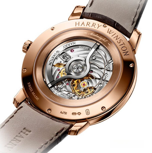 Тонкий корпус диаметром 42.5 мм из розового золота 18к имеет классический дизайн в стиле Harry Winston с тремя арками, в честь знаковых ворот салона Harry Winston на Пятой авеню. Прозрачная задняя крышка открывает вид на изысканную отделку механического Калибра HW2008 с автоматическим подзаводом, который приводит в действие функции часов и минут. Скелетонизированный ротор, круговая зернистость, параболические полосы в стиле Côtes de Genève, а также скошенные мосты подтверждают гордое наследие часового совершенства. Циферблат часов варьируется в зависимости от пера и художественной манеры исполнения мастера. Маркетри, украшающие часы, представляют собой путешествие в отдаленные рубежи животного и растительного мира. Часы комплектуются коричневым ремешком из кожи аллигатора с застежкой из розового золота 18к. Водонепроницаемость корпуса до 30 метров.