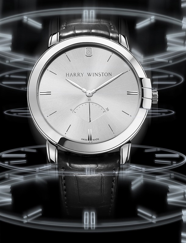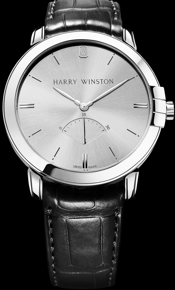 На серебристом циферблате с матовым узором «солнечные лучи» отсчитывают время две классические центральные стрелки и ретроградная малая секундная стрелка. Эта необычная стрелка, полная непринужденной элегантности, которой нельзя не восхищаться, наполняет динамизмом классическую композицию циферблата. 42-миллиметровый корпус из белого золота отличается особым благородством и яркостью стиля. Автоматический механизм, видимый сквозь прозрачное стекло задней крышки, оснащен спиралью из кремния, материала, известного своими высокими антикоррозийными свойствами и износостойкостью. Это техническое новшество отныне используется во всех механизмах Harry Winston. Модель Midnight Retrograde Second Automatic также выполняется в корпусе из розового золота с циферблатом цвета розового шампанского.