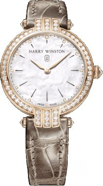 Часы Harry Winston Premier Quartz 31 mm выпущены в корпусе из розового золота 18к, размером 31 мм и водонепроницаемостью 30 м. Внутри корпуса установлен кварцевый механизм, Калибр HW5002. На белом жемчужном циферблате отображаются часы, минуты. Часы комплектуются ремешком из кожи аллигатора с вставкой из розового золота 18к. Корпус инкрустирован белыми бриллиантами.