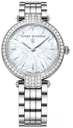 Часы Harry Winston Premier Quartz 31 mm выпущены в корпусе из белого золота 18к, размером 31 мм и водонепроницаемостью 30 м. Внутри корпуса установлен кварцевый механизм, Калибр HW5002. На белом жемчужном циферблате отображаются часы, минуты. Часы комплектуются браслетом из белого золота 18к. Корпус инкрустирован белыми бриллиантами.