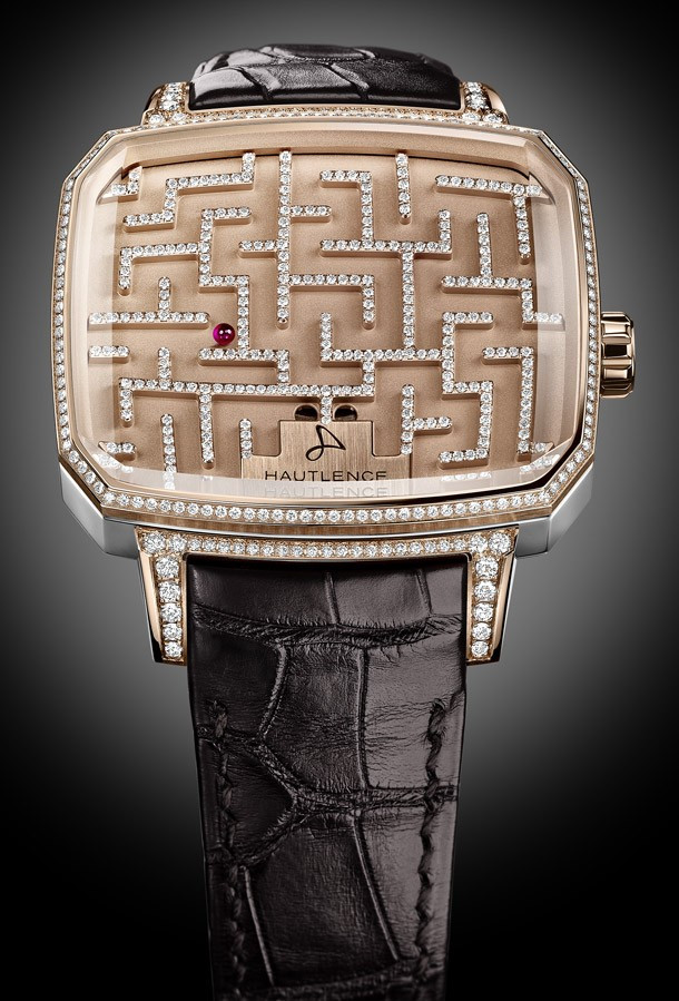 Часы выпущены в корпусе из титана и розового золота 18к, размером 37 x 43.5 x 13 мм с водонепроницаемостью 30 м. Внутри корпуса установлен механизм с ручным заводом. На золотистом циферблате с белыми бриллиантами изображен лабиринт. Часы комплектуются ремешком из кожи аллигатора с титановой вставкой. Серия ограничена - 18 штук. Корпус инкрустирован белыми бриллиантами.