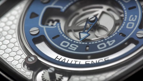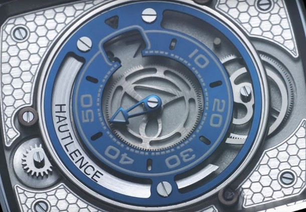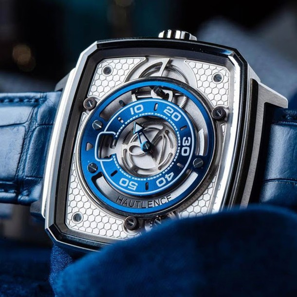 В своей новой модели часов HL Newton компания Hautlence представляет новый Калибр, в котором механизм прыгающего часа работает по новому принцу отображения времени. Используя систему, основанную на гравитационной силе, HL Newton указывает время только тогда, когда это необходимо. Часы входят в механический режим ожидания, или, можно сказать в спящем режиме, всякий раз, когда текущее значение минуты не представляет интереса. В часах применяется автоматический мануфактурный Калибр HTL 201-1 с балансовой частотой 21 600 пк/ час и запасом хода 3 дня. Корпус размером 46 x 39 x 12 мм изготовлен из титана, имеет типичную для бренда форму прямоугольника со скругленными углами. Гофрированная коронка также изготовлена из титана и имеет выгравированный логотип Hautlence.
