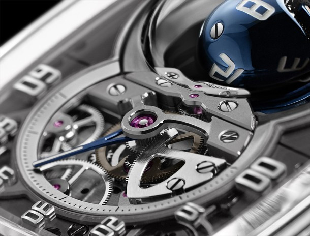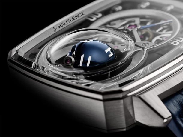 Компания Hautlence представила новую модель HL Sphere с кобальтово-синей сферой на циферблате. Вращающийся шар расположен в левой части циферблата и служит для отображения текущего часа. Справа от сферы находится циферблат с ретроградной шкалой, показывающий минуты. Минутная дорожка и цифры прикреплены к сапфировому стеклу. В основе часов находится механизм HTL 501-1 с ручным заводом. Калибр разработан и произведен компанией Hautlence. Даже пружины, которые они используют, производятся дочерней компанией. Часы размером 39 x 46 х 12 мм (плюс еще 3.75 мм на сапфировый купол, покрывающий часовую сферу) представлены в корпусе из белого золота 18к. Hautlence HL Sphere выпущены ограниченной серией 28 штук.