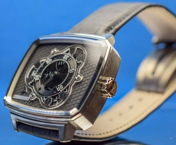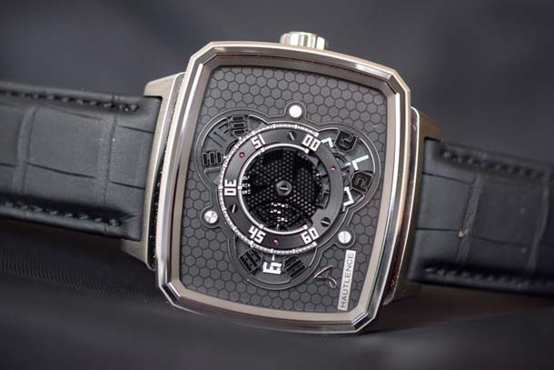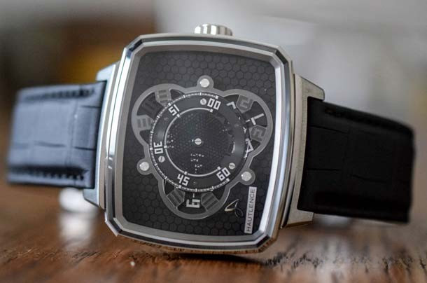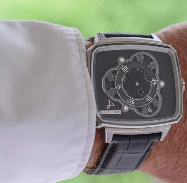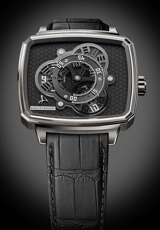 Размер корпуса часов Vagabonde, изготовленного из титана, составляет 46 x 38 x 12 мм. Поверхности отделаны полировкой и шлифовкой. Корпус украшает элегантный ступенчатый безель и рифленая коронка. На сером фоне циферблата в виде пчелиных сот находятся четыре диска, три диска для индикации сателлитного прыгающего часа и центральный вращающийся диск для индикации минут. Автоматический механизм Hautlence HTL 205-1 создан на базе Калибра HMC 200, обладает запасом хода 3 дня. Механизм финиширован вручную, включая узор Côtes de Genève на мостах и сотовый узор на роторе. Часы комплектуются черным ремешком из кожи аллигатора с системой быстрой замены ремешка. Застежка из титана.
