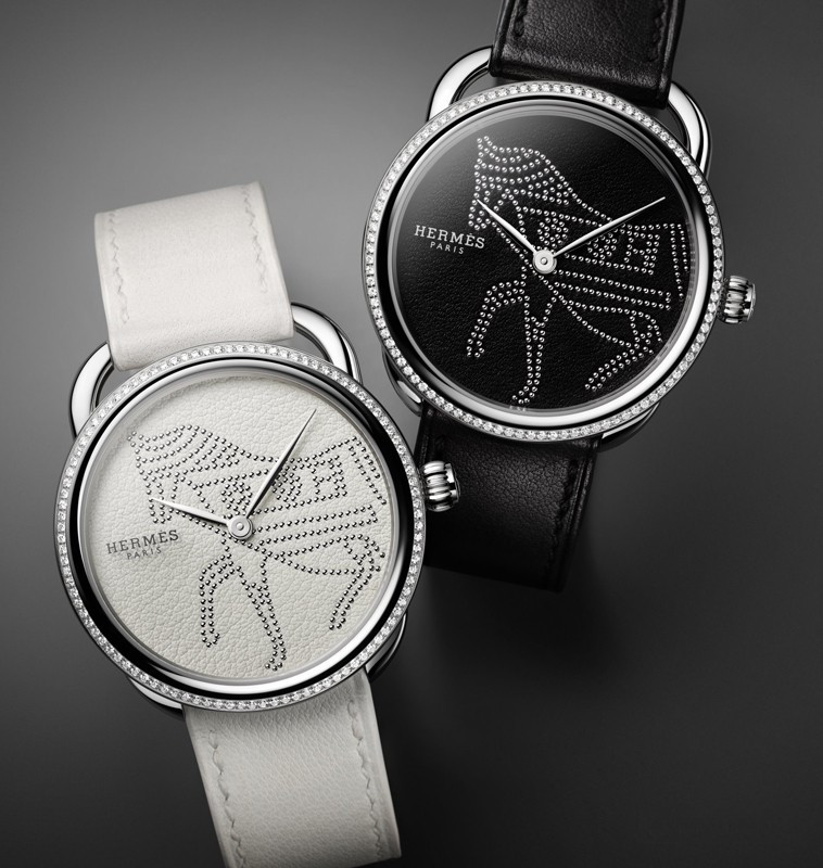 Часы Hermes Arceau Horse представлены в корпусе из нержавеющей стали диаметром 36 мм водонепроницаемостью 30 метров. Внутри корпуса установлен кварцевый механизм. На черном циферблате отображаются часы, минуты. Часы поставляются на кожаном ремешке с вставкой из нержавеющей стали. Безель из белых бриллиантов.
