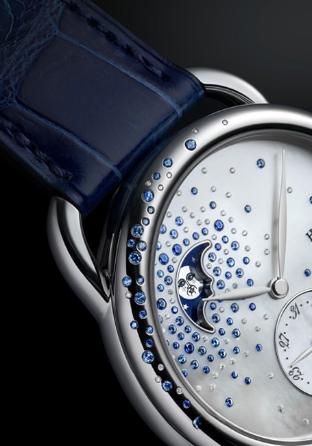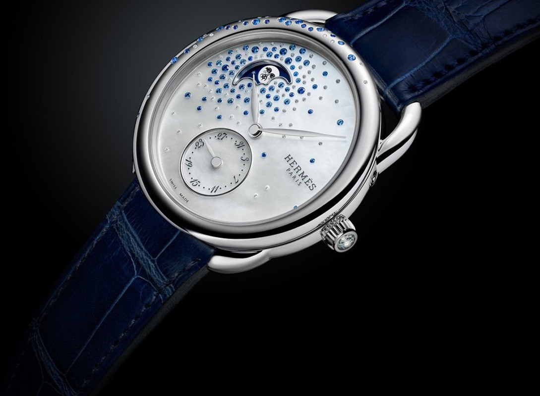 Часы Hermes Arceau Petite Lune представлены в корпусе из нержавеющей стали размером 38 мм водонепроницаемостью 30 метров. Внутри корпуса установлен автоматический механизм, Калибр Hermes H1837, обладающий запасом хода 50 часов. На белом жемчужном циферблате отображаются часы, минуты, дата, фаза луны. Часы поставляются на ремешке из кожи аллигатора с вставкой из нержавеющей стали.