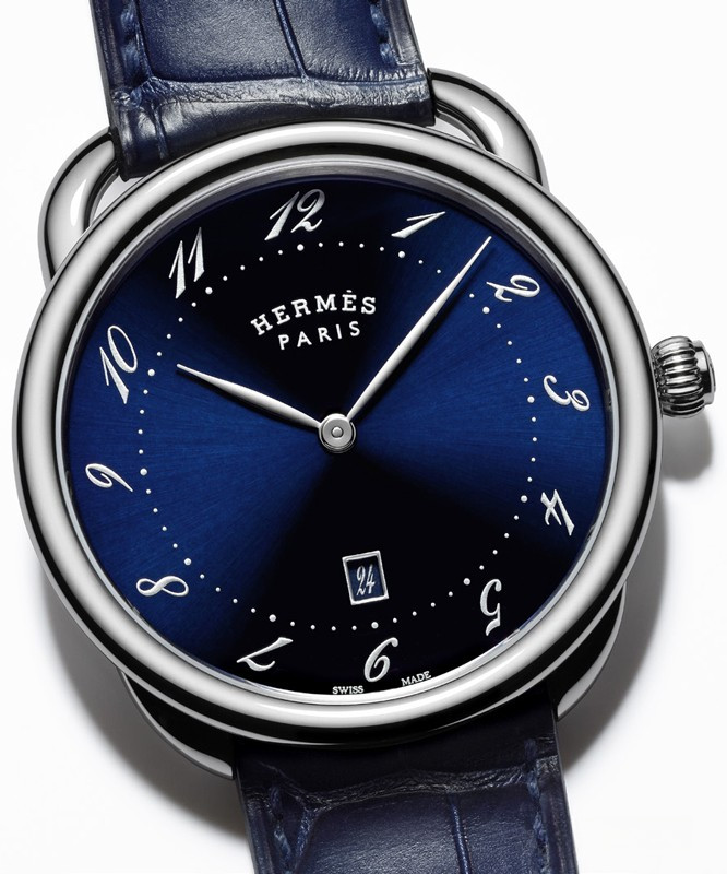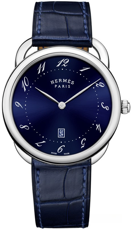 Часы Hermes Arceau TGM представлены в корпусе из нержавеющей стали размером 40 мм водонепроницаемостью 30 метров. Внутри корпуса находится автоматический механизм, Калибр H1837, обладающий запасом хода 50 часов. На синем циферблате отображаются часы, минуты, дата. Часы поставляются на ремешке из кожи аллигатора с вставкой из нержавеющей стали.