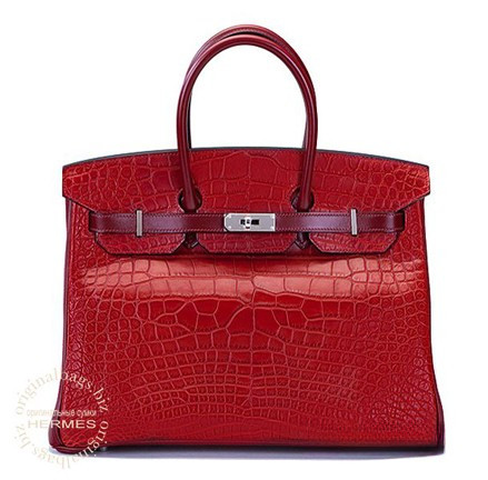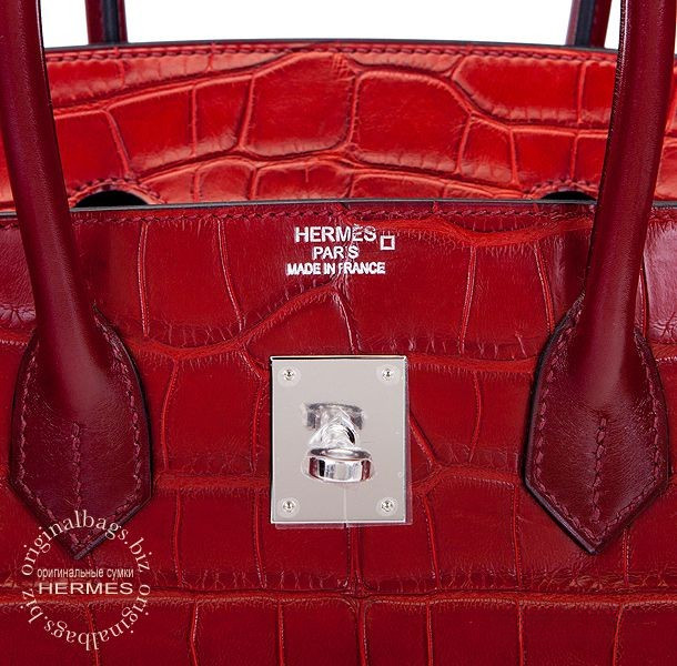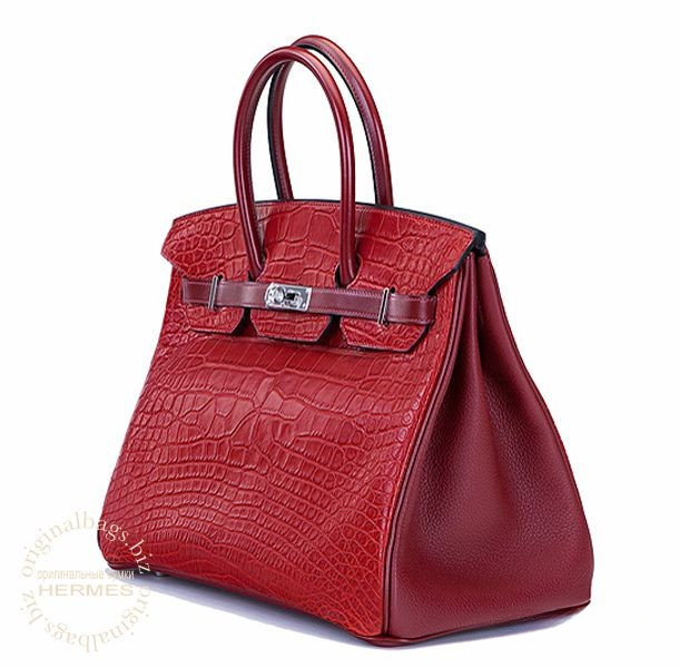 Оригинальная сумка Birkin 35 Rouge H/Rouge H/Rouge H от французского бренда Hermes, выполнена в комбинации матовой кожи аллигатора Crocodile Niloticus Mat, гранулированной кожи теленка Taurillon Clememce и гладкой кожи теленка Veau Box.Размеры сумки составляют: 35 x 25 x 18 см, ручек 14 см.Цвет кожи красно-коричневый, под названием "Rouge H" передняя и задняя панели сумки из крокодиловой кожи, боковая панель и дно сумки из гранулированной кожи теленка, ручки с ремешками из гладкой кожи теленка.Штамп производства - R (2014).В сумке с одним отделением есть один карман с молнией и один без нее.Внутренняя отделка сделана из кожи козы.Вся фурнитура из палладия.Реальные фотографии сумки представлены на нашем сайте.В комплект с сумкой входит:- 2 защитных чехла от дождя,- 1 чехол от пыли,- защитная фетровая ткань,- замочек с двумя ключиками в специальном футлярчике,- карточка с информацией по уходу за кожей,- CITES сертификат.Есть в наличии в полном комплекте с чеком от официального бутика Hermes.