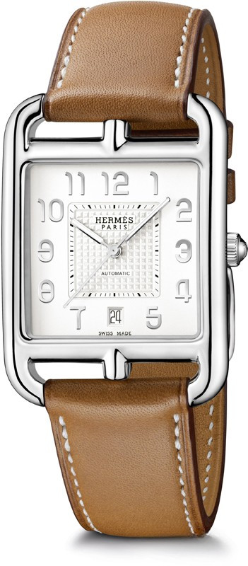 Часы Hermes Cape Cod TGM Manufacture представлены в корпусе из нержавеющей стали размером 33 х 33 мм водонепроницаемостью 30 метров. Внутри корпуса находится автоматический механизм, Калибр H1912, обладающий запасом хода 50 часов. На серебристом циферблате отображаются часы, минуты, секунды, дата. Часы поставляются на кожаном ремешке с вставкой из нержавеющей стали.