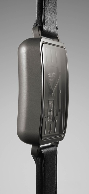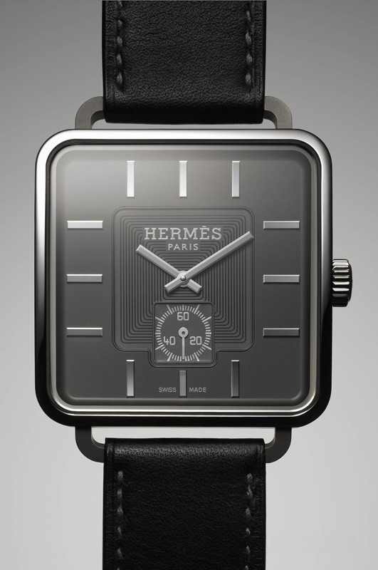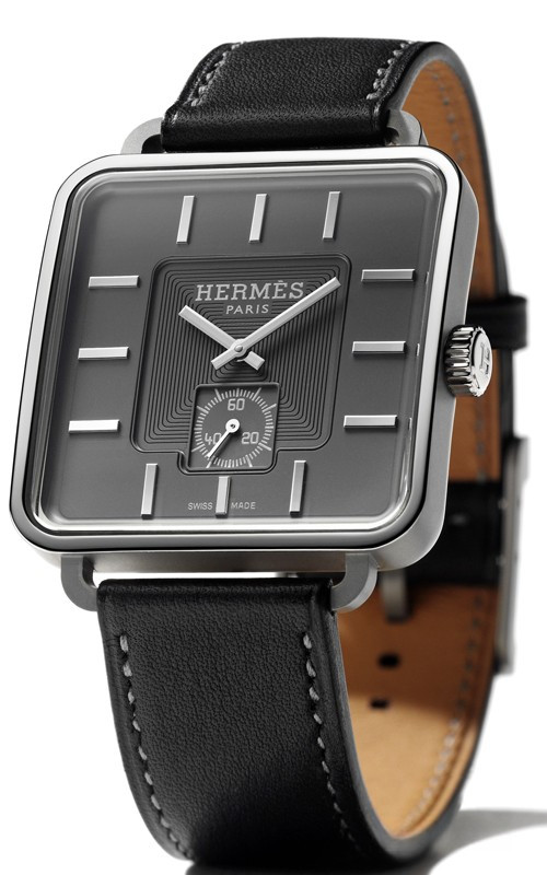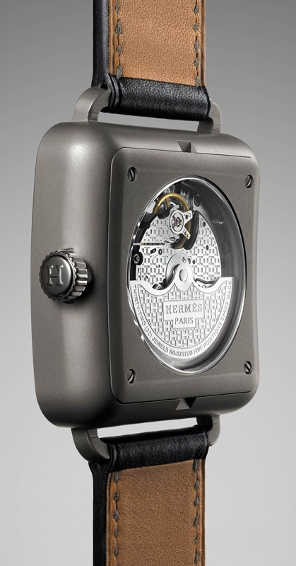 Часы Hermes Carre H представлены в корпусе из титана размером 36.5 х 36.5 м водонепроницаемостью 30 метров. Внутри корпуса находится автоматический механизм, Калибр GP 3200, обладающий запасом хода 44 часа. На сером циферблате отображаются часы, минуты, дата, секунды. Часы поставляются на кожаном ремешке с титановой вставкой.