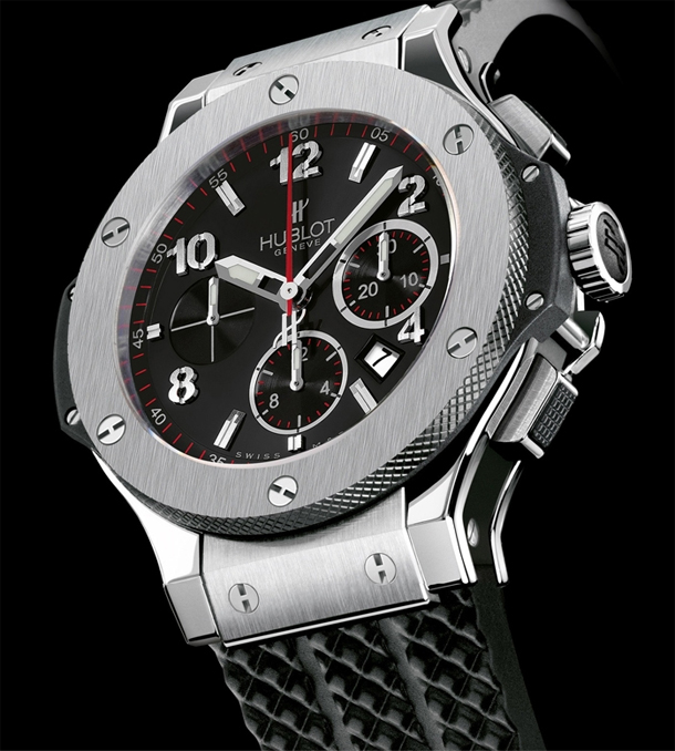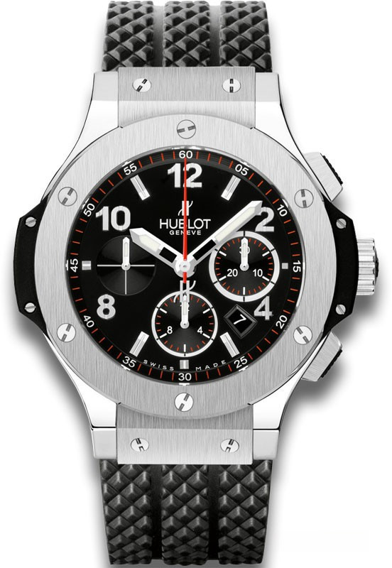 Модель Hublot Big Bang Steel 301.SX.130.RX укомплектована автоматическим механизмом, Калибр HUB 44, с запасом хода 42 часа. На черном гильошированном циферблате отображаются функции часов, минут, секунд и даты. Часы с функцией хронографа выпущены в корпусе диаметром 44 мм из нержавеющей стали на черном каучуковом ремешке с вставкой из нержавеющей стали. Водонепроницаемость 30 м.