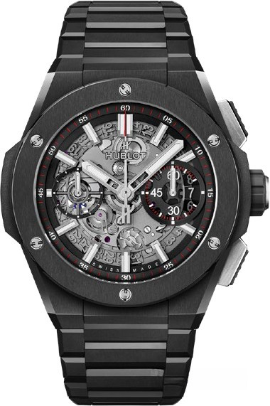 Часы Hublot Big Bang Integral 42 mm представлены в корпусе из керамики диаметром 42 мм водонепроницаемостью 100 метров. Внутри корпуса установлен автоматический механизм с функцией хронографа, Калибр HUB1280, обладающий запасом хода 72 часа. На серебристом скелетированном циферблате отображаются часы, минуты, секунды, дата. Часы поставляются на керамическом браслете.