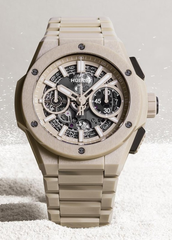 Часы Hublot Big Bang Integral 42 mm представлены в корпусе из керамики диаметром 42 мм водонепроницаемостью 100 метров. Внутри корпуса установлен автоматический механизм с функцией хронографа, Калибр HUB1280, обладающий запасом хода 72 часа. На серебристом скелетированном циферблате отображаются часы, минуты, секунды, дата. Часы поставляются на керамическом браслете. Серия ограничена - 250 шт.