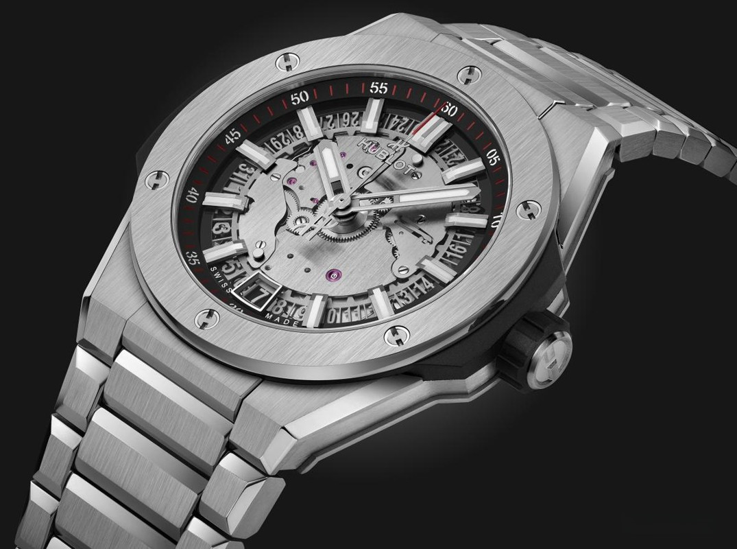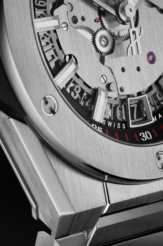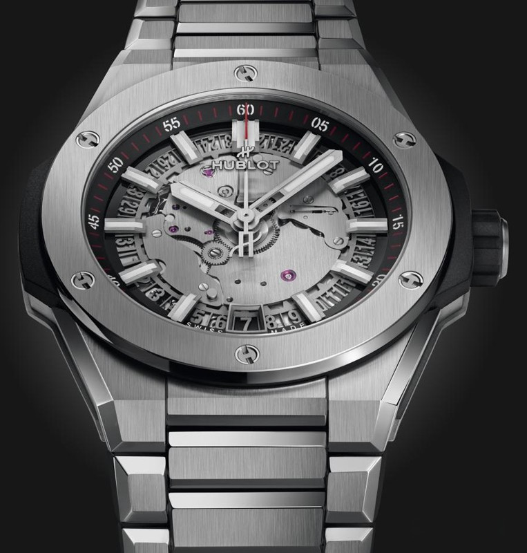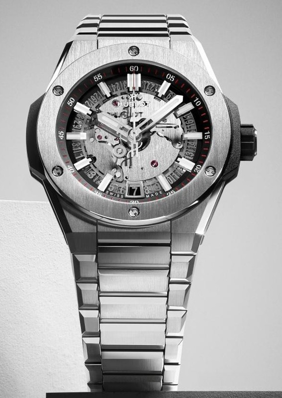 Часы Hublot Big Bang Integral Time Only представлены в корпусе из титана размером 40 мм водонепроницаемостью 100 м. Внутри корпуса установлен автоматический механизм, Калибр HUB1710, обладающий запасом хода 50 часов. На серебристом скелетированном циферблате отображаются часы, минуты, секунды, дата. Часы поставляются на титановом браслете.