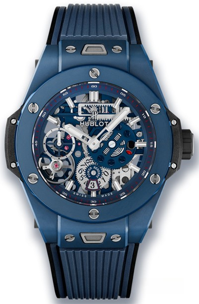 Выполненные в традиционном для Big Bang 45-мм корпусе (с водостойкостью до 100 м) MECA-10 представлены в керамическом корпусе. Модель получила новый скелетезированный часовой механизм HUB1201 с ручным подзаводом. Резерв хода HUB1201 — около 10 суток. Такой запас хода Big Bang MECA-10 обеспечивают две пружины, потому заводных барабанов у них тоже два и два индикатора запаса хода. На циферблате отображаются часы, минуты, секунды, запас хода. HUB1201 состоит из 223 отдельных деталей, и буквально каждую из них в действии можно рассмотреть через прозрачные переднее и заднее сапфировые стекла. Big Bang MECA-10 комплектуются каучуковым ремнем, который оснащен специальной системой быстрой замены «One Click».