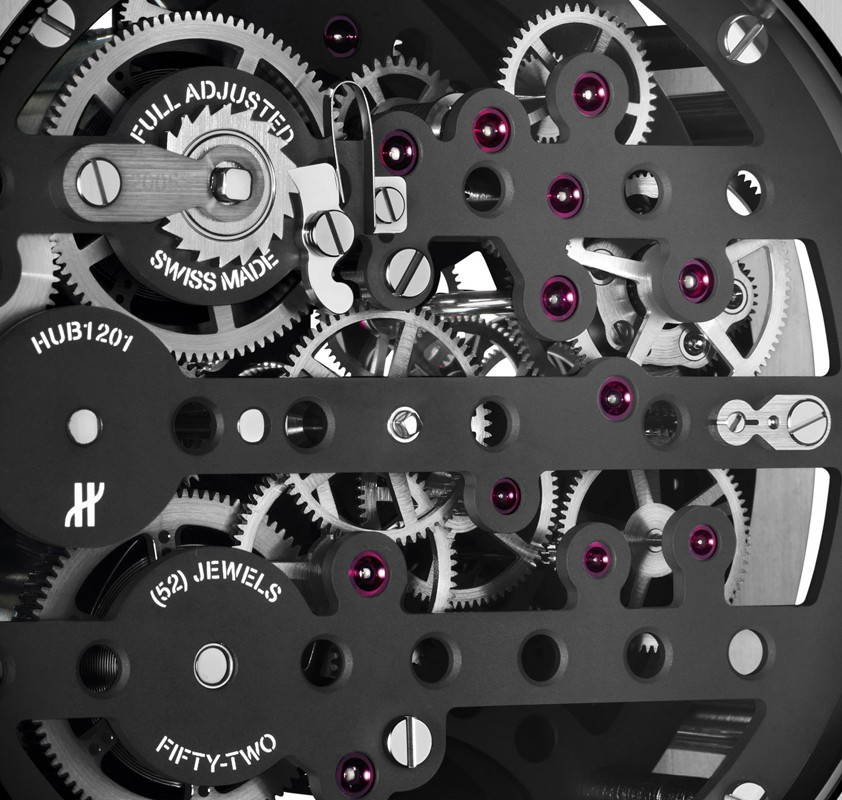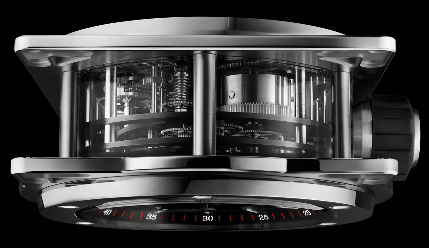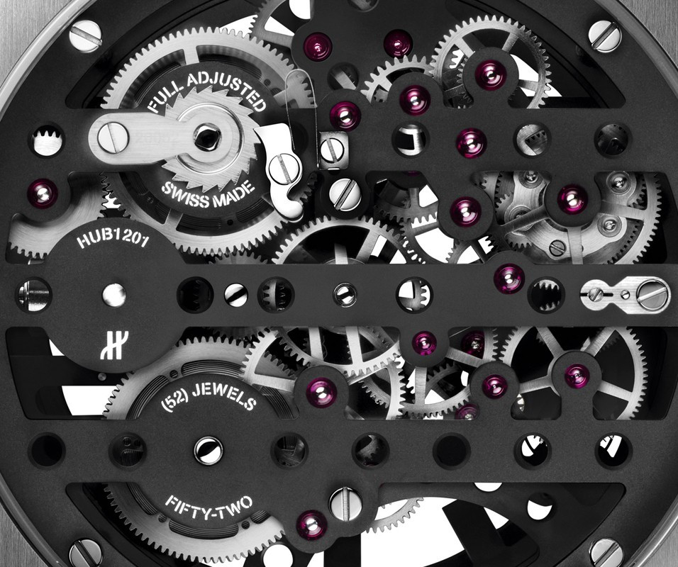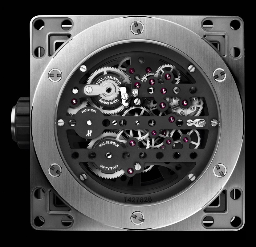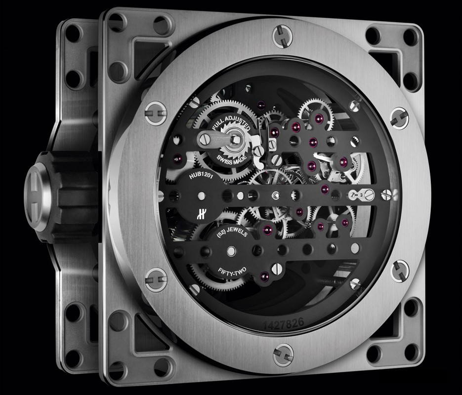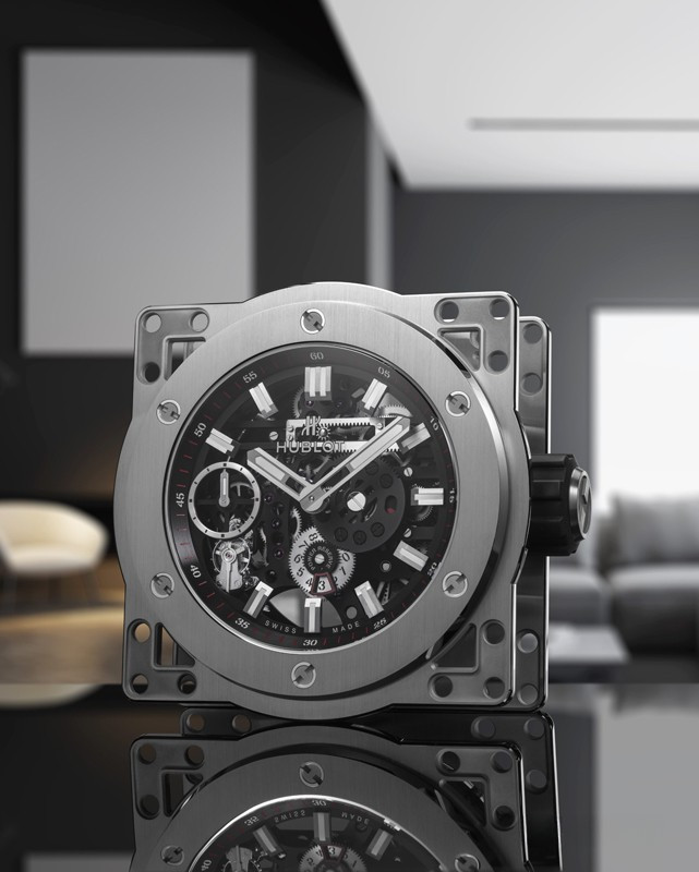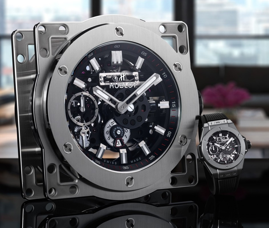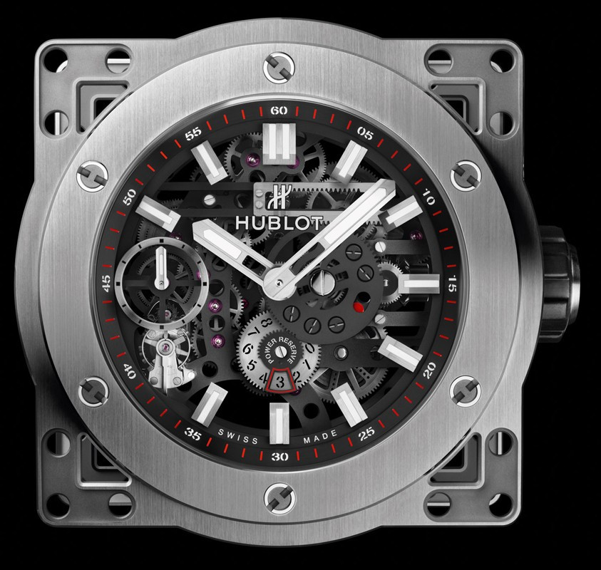 Часы Hublot Meca-10 Clock представлены в корпусе из нержавеющей стали с покрытием PVD размером 134.6 х 69.8 мм. Внутри корпуса установлен механизм с ручным заводом, обладающий запасом хода 10 дней. На черном циферблате отображаются часы, минуты, секунда, запас хода. Настольные часы.
