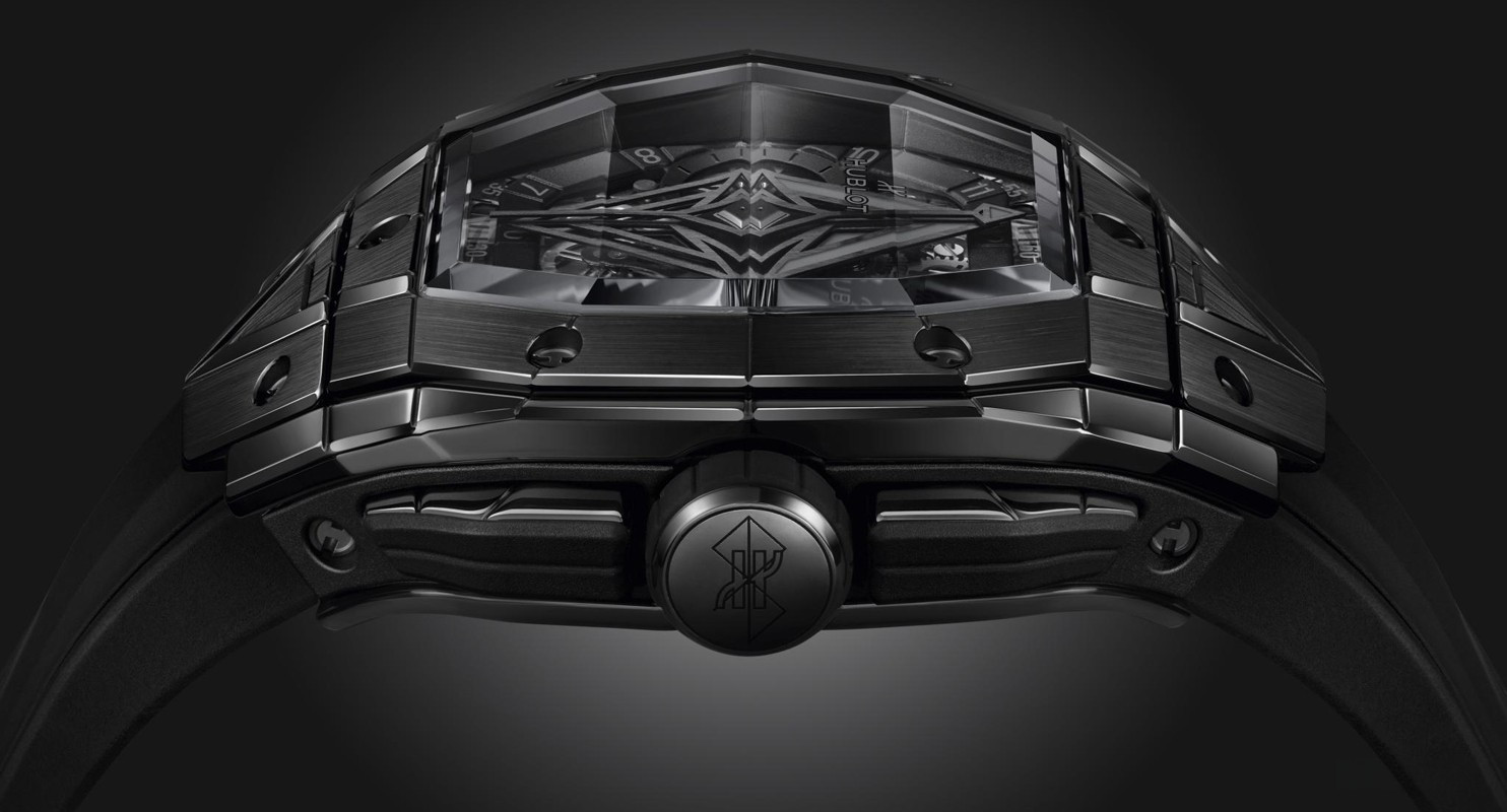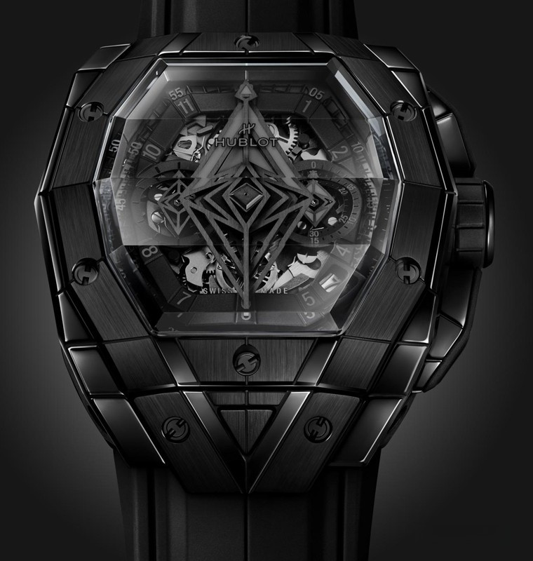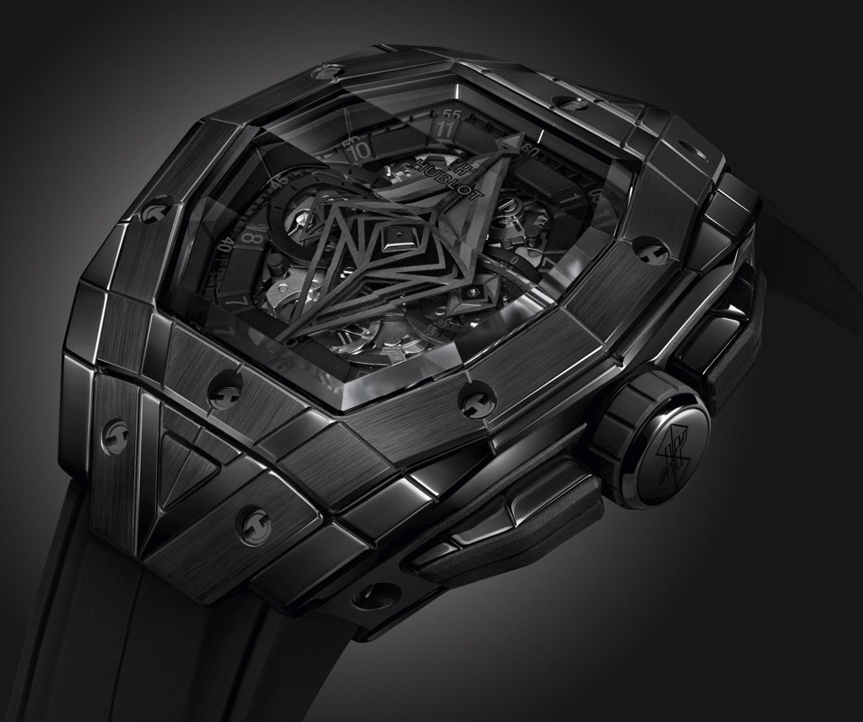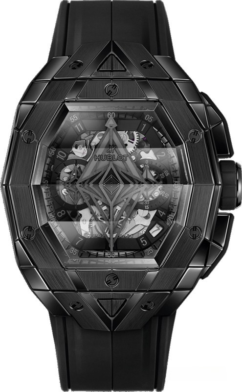 Часы Hublot Big Bang Sang Bleu 42 mm представлены в корпусе размером 42 мм из керамики водонепроницаемостью 100 метров. Внутри корпуса установлен автоматический механизм, Калибр HUB4700, обладающий запасом хода 50 часов. На черном циферблате отображаются часы, минуты, секунды, дата. Часы поставляются на каучуковом ремешке с застежкой из нержавеющей стали. Серия ограничена - 200 шт.