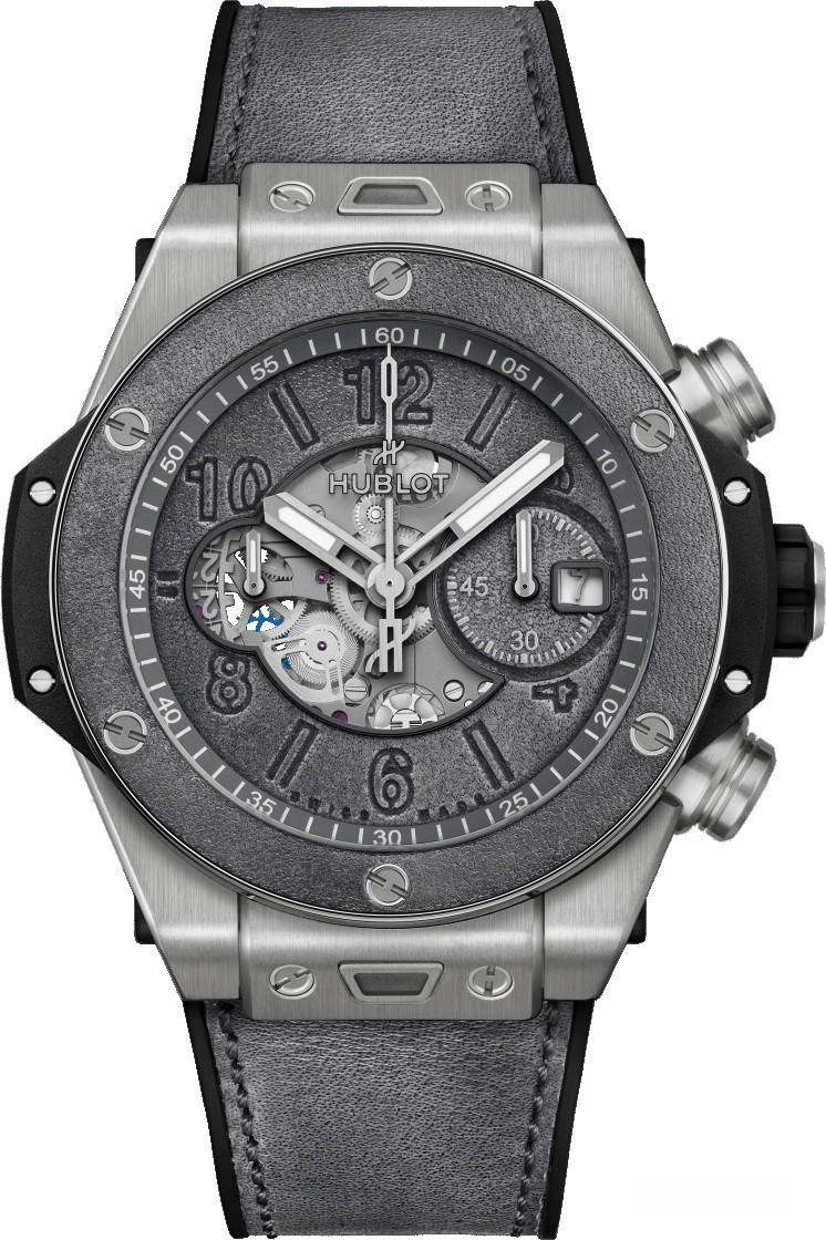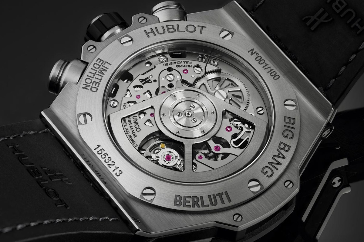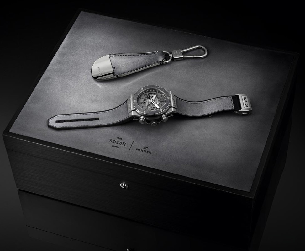 Часы Hublot Big Bang Unico Berluti Aluminio 44 mm представлены в корпусе из титана размером 44 мм водонепроницаемостью 100 метров. Внутри корпуса находится автоматический механизм, Калибр HUB1280, обладающий запасом хода 72 часа. На сером циферблате отображаются часы, минуты, секнуды, дата. Часы поставляются на кожаном ремешке с вставкой из титана. Серия ограничена - 100 шт.