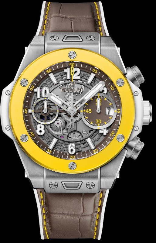 Часы Hublot Big Bang Chronograph 42 представлены в корпусе из титана диаметром 42 мм и водонепроницаемостью 100 метров. Внутри корпуса установлен автоматический механизм, Калибр HUB1280, обладающий запасом хода 72 часа. На коричневом скелетированном циферблате отображаются часы, минуты, секунды, дата, накопители хронографа. Часы поставляются на ремешке кожи аллигатора с титановой застежкой. Серия ограничена - 25 шт.