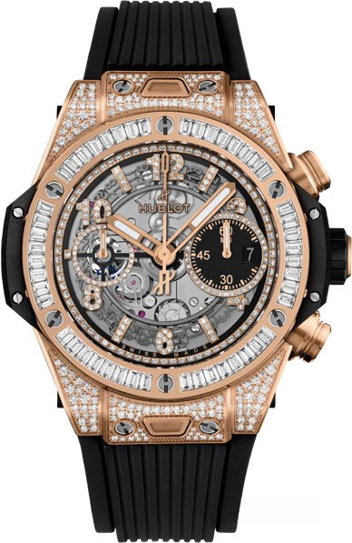 Часы Hublot Big Bang Chronograph 42 представлены в корпусе из розового золота 18к диаметром 42 мм и водонепроницаемостью 100 метров. Внутри корпуса установлен автоматический механизм, Калибр HUB1280, обладающий запасом хода 72 часа. На серебристом с черным скелетированном циферблате с белыми бриллиантами отображаются часы, минуты, секунды, дата, накопители хронографа. Часы поставляются на каучуковом ремешке с вставкой из розового золота 18к. Корпус инкрустирован белыми бриллиантами.