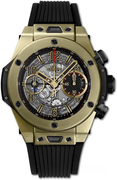 Часы Hublot Big Bang Unico Full Magic Gold представлены в корпусе из розового золота 18к диаметром 42 мм и водонепроницаемостью 100 метров. Внутри корпуса установлен автоматический механизм, Калибр HUB1280, обладающий запасом хода 72 часа. На серебристом скелетированном циферблате отображаются часы, минуты, секунды, дата, накопители хронографа. Часы поставляются на каучуковом ремешке с титановой вставкой. Серия ограничена - 200 шт.