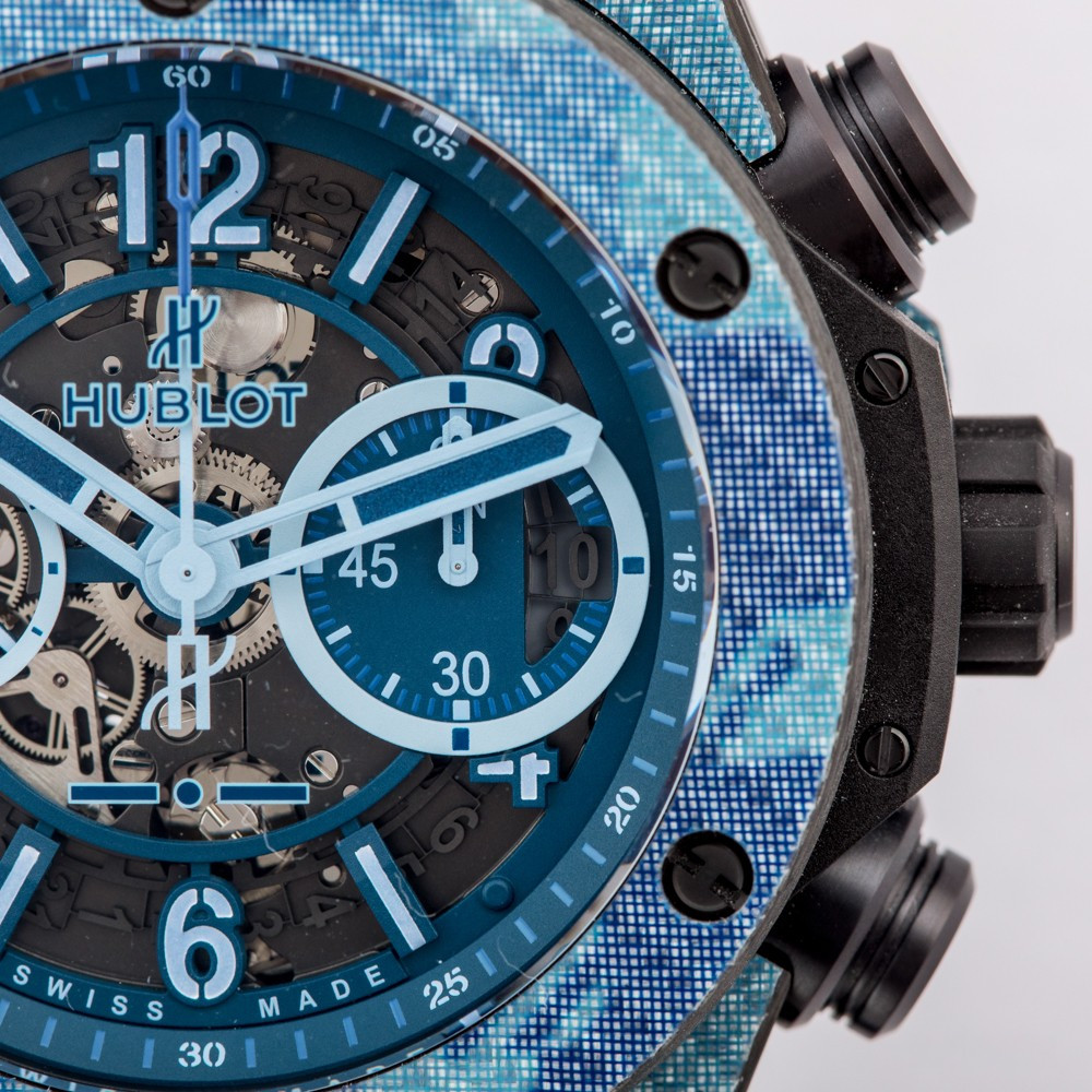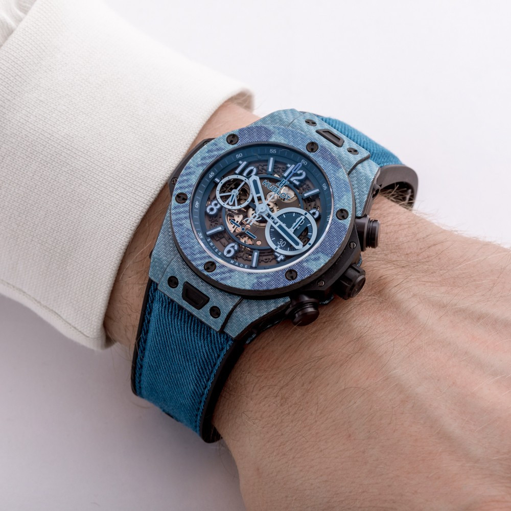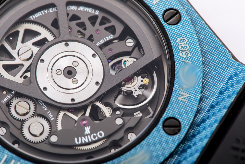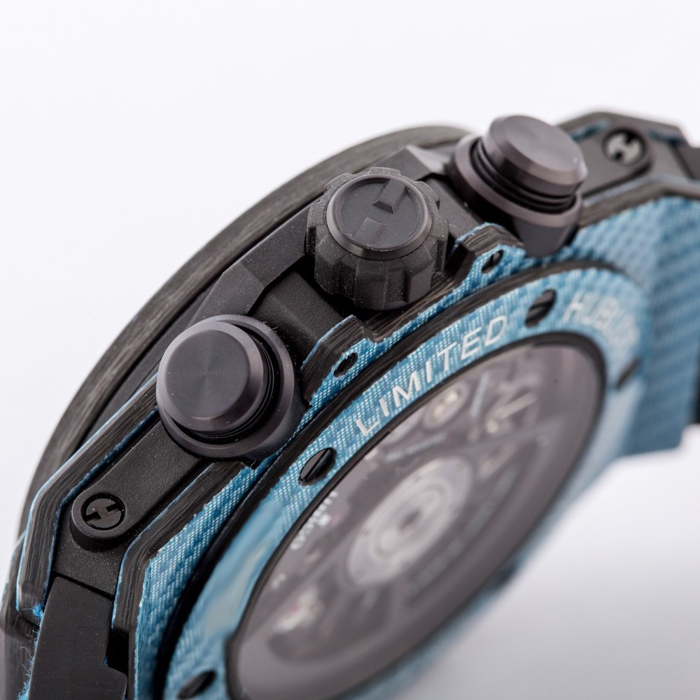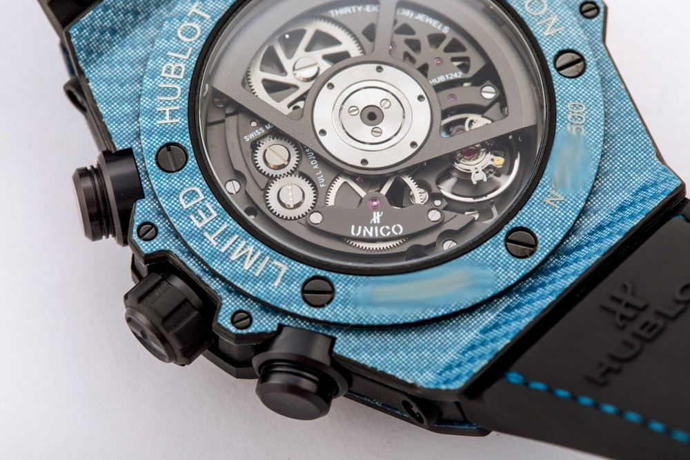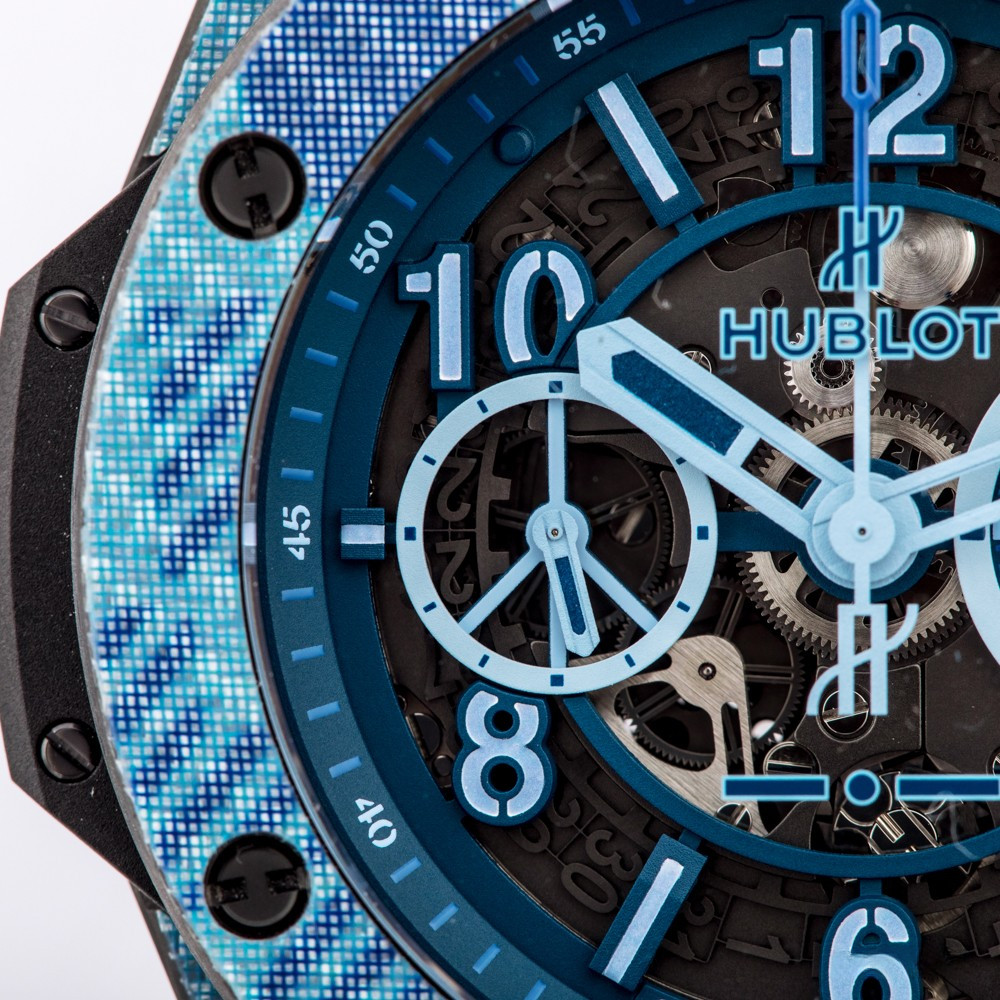 Модель 411.YL.5190.NR.ITI16 представлена в корпусе из карбона диаметром 45 мм и водонерпоницаемостью до 100 метров. На синем скелетированном циферблате отобаржаются часы, минуты, секунды и дата. Часы выпущены ограниченной серией 500 штук. Внутри корпуса установлен автоматический механизм HUB Unico 1242 с запасом хода 72 часа. Часы поставляются ремешке из каучука и текстиля с титановой застежкой.