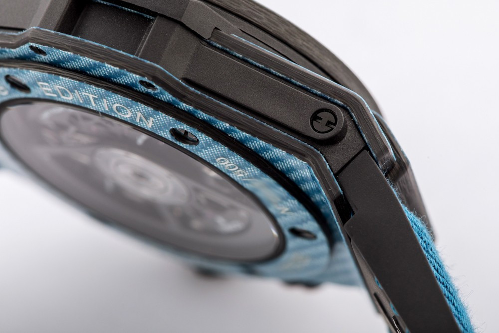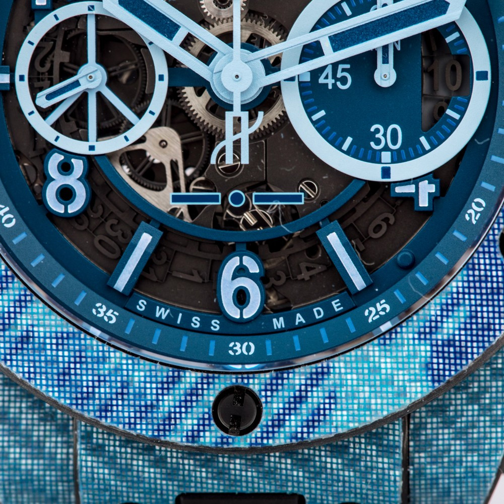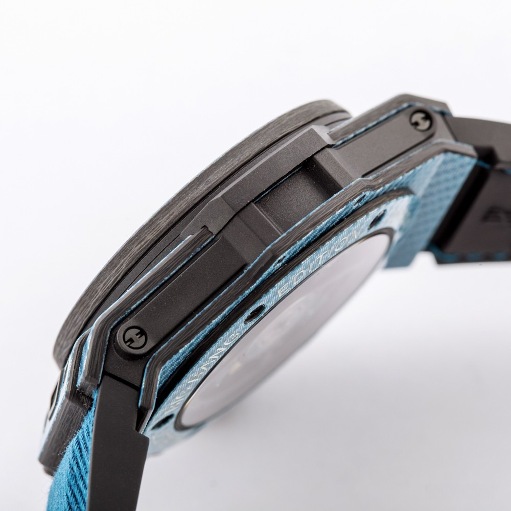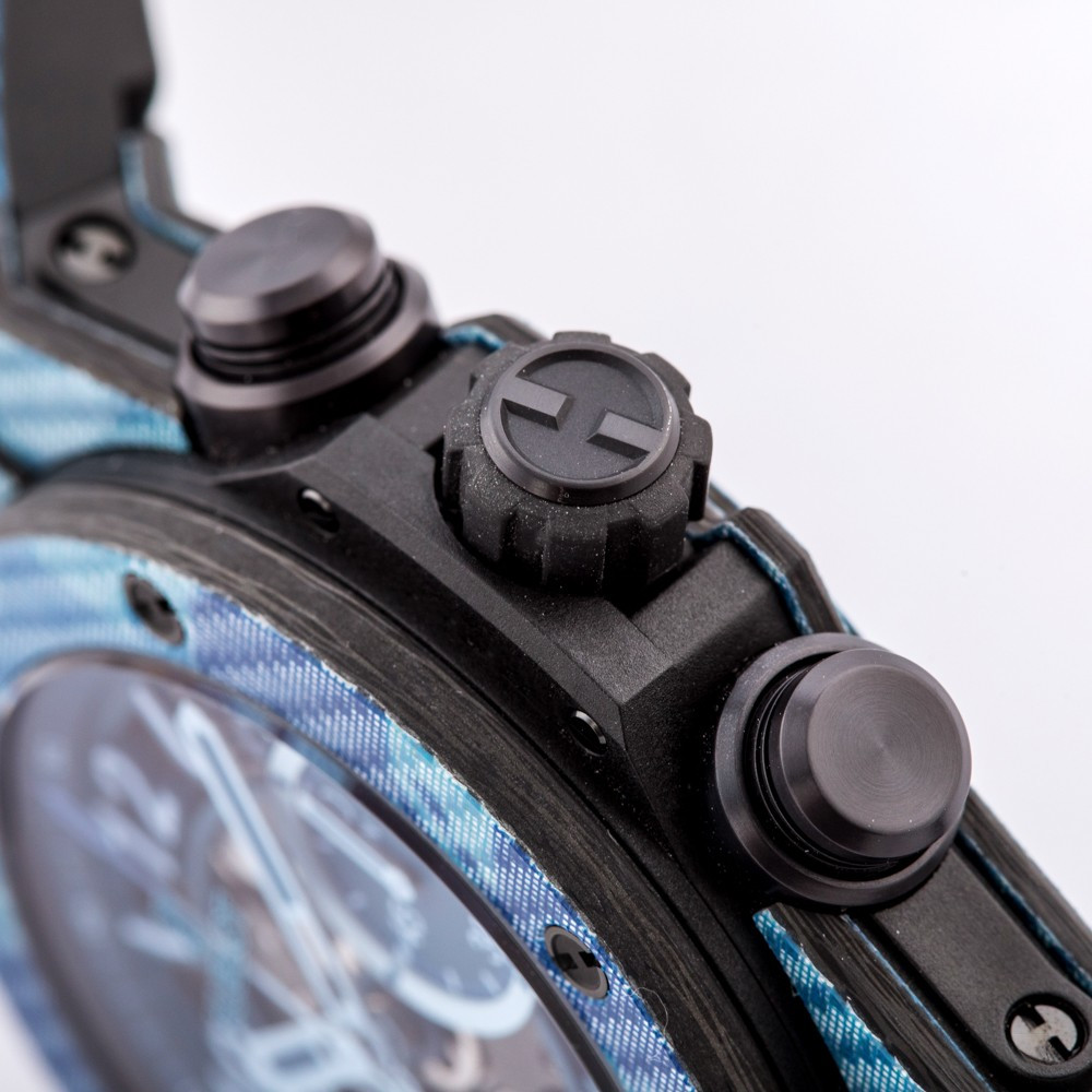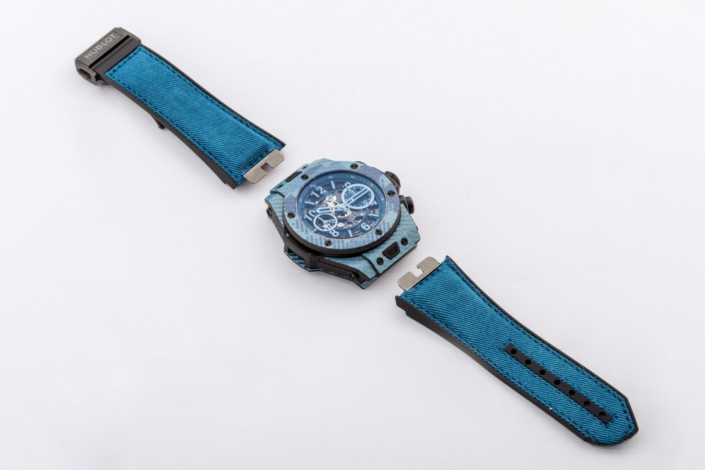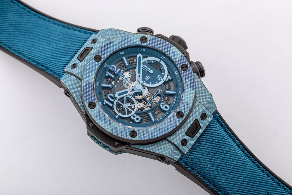 Модель 411.YL.5190.NR.ITI16 представлена в корпусе из карбона диаметром 45 мм и водонерпоницаемостью до 100 метров. На синем скелетированном циферблате отобаржаются часы, минуты, секунды и дата. Часы выпущены ограниченной серией 500 штук. Внутри корпуса установлен автоматический механизм HUB Unico 1242 с запасом хода 72 часа. Часы поставляются ремешке из каучука и текстиля с титановой застежкой.
