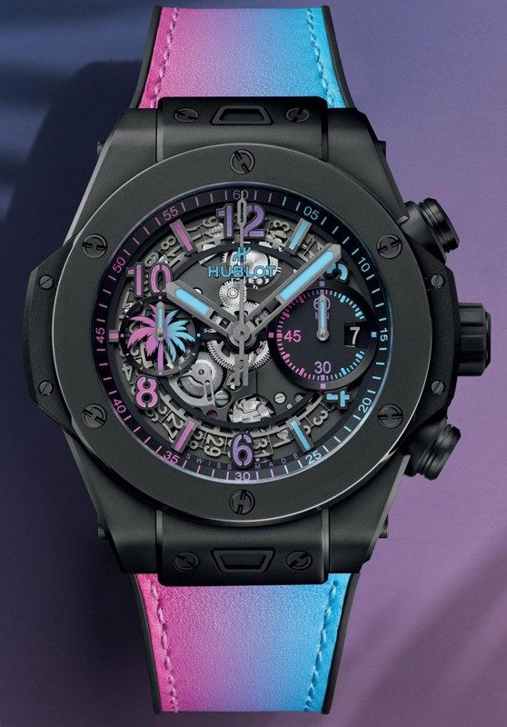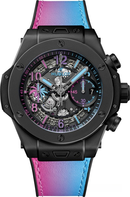 Часы Hublot Big Bang Unico Magic City представлены в корпусе размером 42 мм из керамики водонепроницаемостью 100 метров. Внутри корпуса установлен автоматический механизм, Калибр HUB1280, обладающий запасом хода 72 часа. На черном циферблате отображаются часы, минуты, секунды, дата. Часы поставляются на кожаном ремешке с титановой застежкой. Серия ограничена - 35 шт.