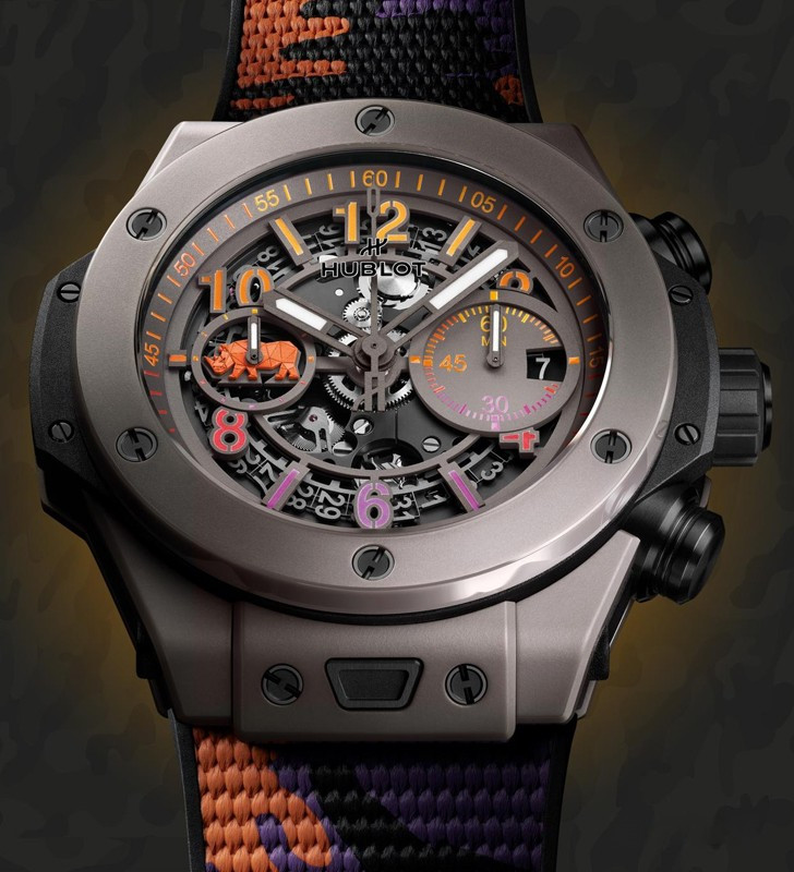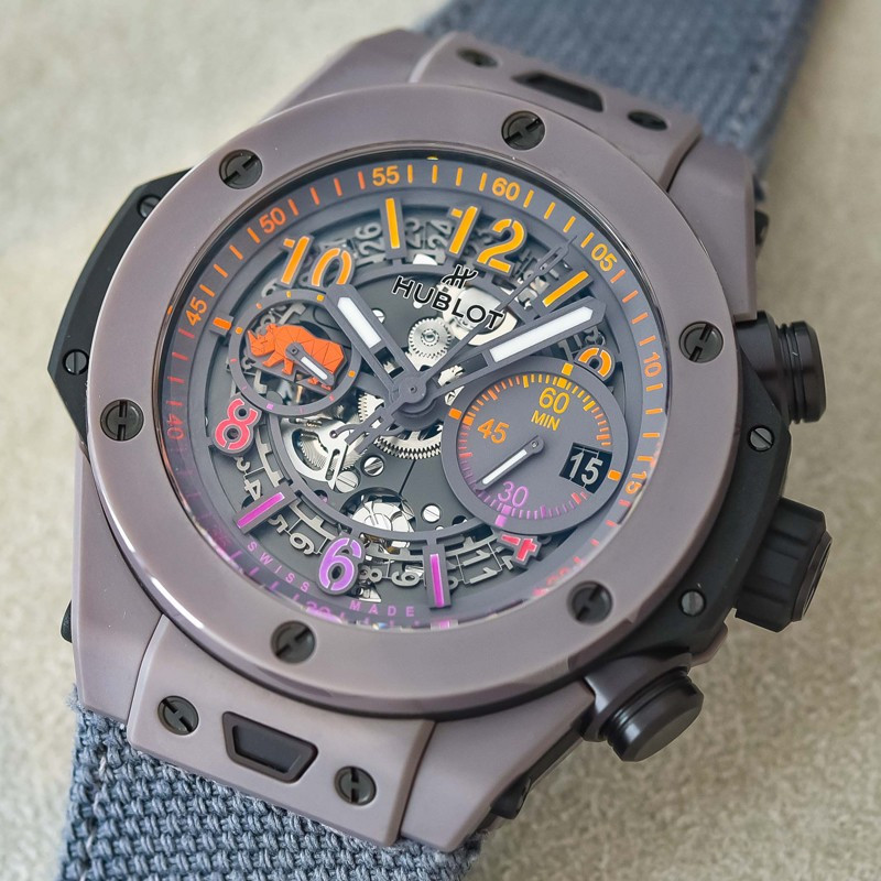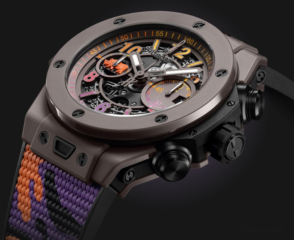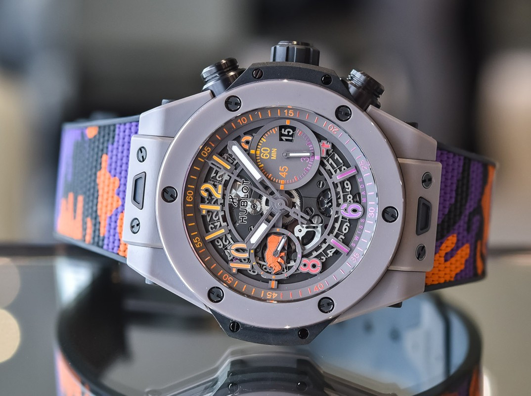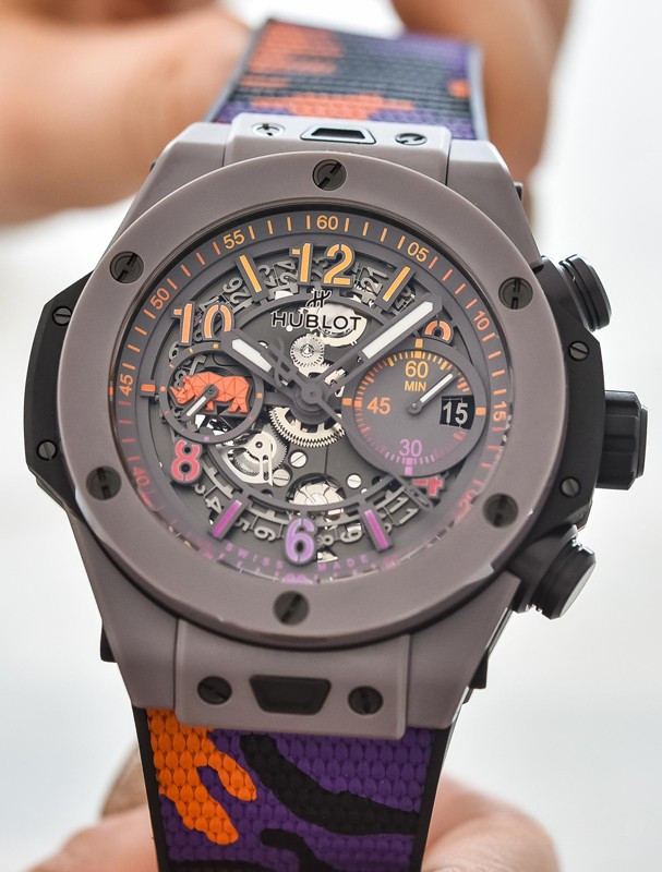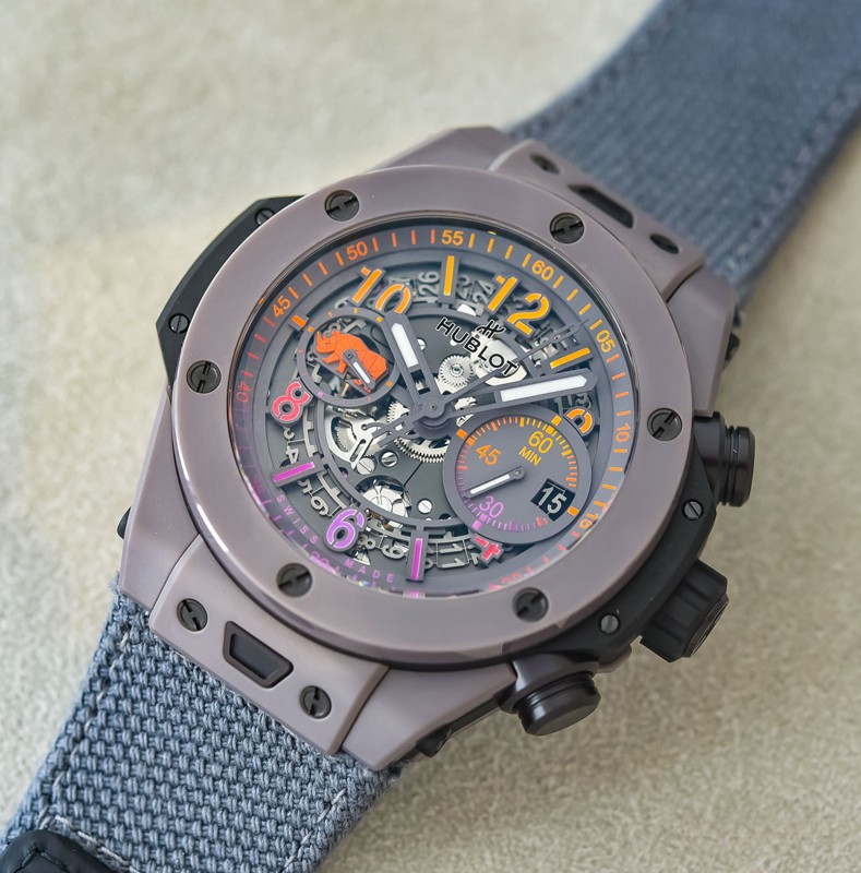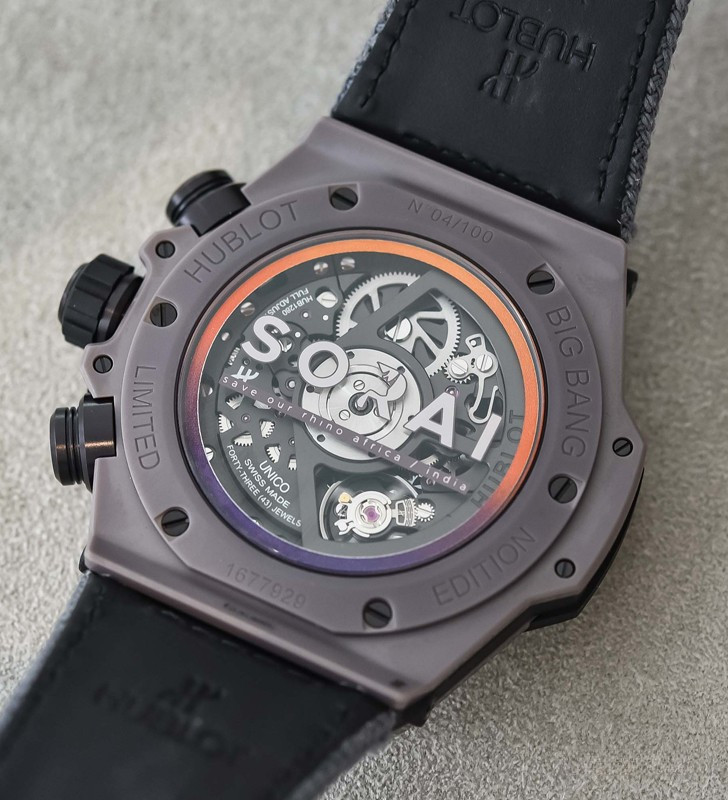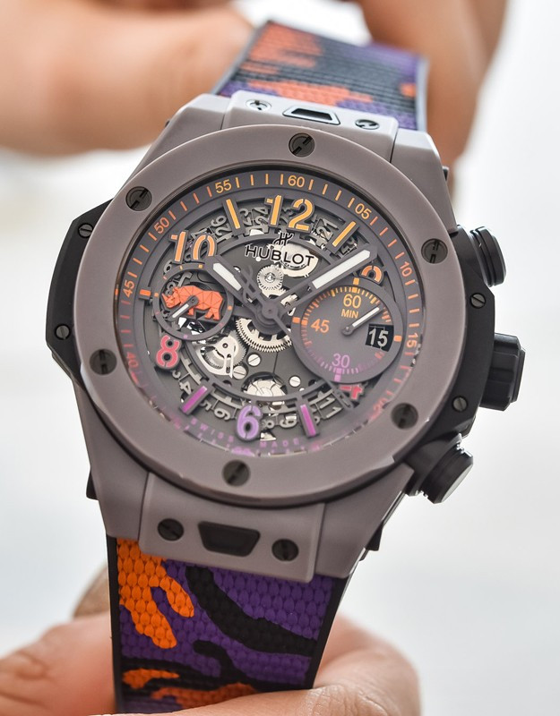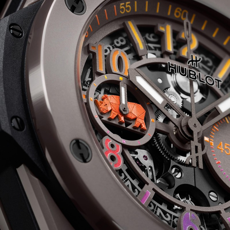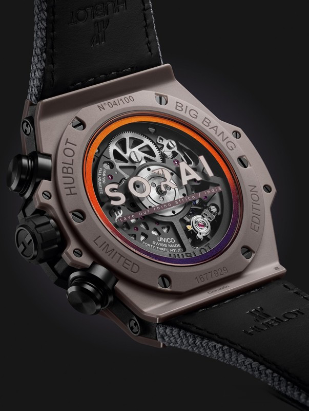 Часы Hublot Big Bang Unico Sorai представлены в корпусе из керамики размером 44 мм водонепроницаемостью 100 метров. Внутри корпуса находится автоматический мехнизм, Калибр HUB1280, обладающий запасом хода 72 часа. На сером циферблате отображаются часы, минуты, секунды, дата. Часы поставляются на текстильном ремешке с титановой застежкой. Серия ограничена - 100 шт.