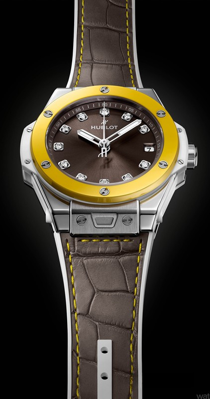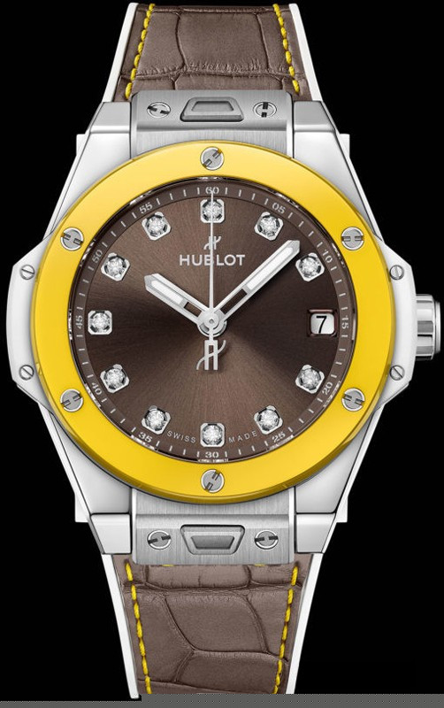 Часы Hublot Big Bang One Click 39 mm представлены в корпусе размером 39 мм из нержавеющей стали водонепроницаемостью до 100 метров. Внутри корпуса установлен автоматический механизм, Калибр HUB1710, обладающий запасом хода 50 часов. На коричневомм циферблате с 10-ю белыми бриллиантами отображаются часы, минуты, секунды, дата. Часы поставляются на ремешке из кожи аллигатора с застежкой из нержавеющей стали. Серия ограничена - 25 шт.
