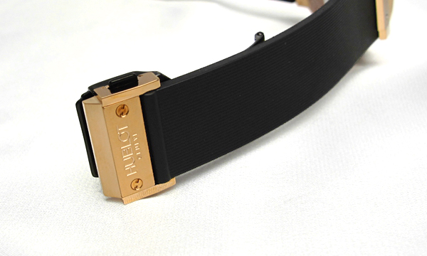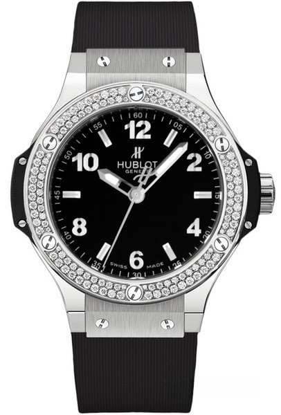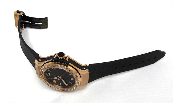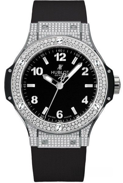 Часы Hublot Big Bang 38mm Red Gold Diamonds 361.PX.1280.RX.1104 обладают круглым корпусом из 18-каратного розового золота, диаметром 38 мм, водонепроницаемостью до 100 м. Безель из 126-и белых бриллиантов, общим весом 0.87ct. На торце рифленой заводной головки, расположенной на 3 часах, имеется логотип в виде большой буквы Н. Сапфировое стекло установлено на передней стороне часового корпуса (с антибликовым покрытием) и на его завинчивающейся задней крышке. Циферблат черного цвета со скелетированными стрелками. Модель оснащена кварцевым мануфактурным швейцарским механизмом с функциями индикации часов, минут и секунд. Калибр отменно отделан и декорирован. Поставляется на ремешке из каучука с вставкой из 18-каратного золота.