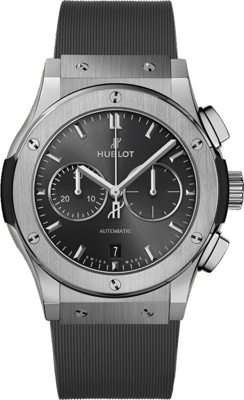 Часы Hublot Classic Fusion обладают круглым корпусом из титана диаметром 42 мм, водонепроницаемостью до 50 м. На торце рифленой заводной головки, расположенной на 3 часах, имеется логотип в виде большой буквы Н. Сапфировое стекло установлено на передней стороне часового корпуса (с антибликовым покрытием) и на его завинчивающейся задней крышке. Циферблат серого цвета. На циферблате симметрично расположены накопители хронографа. Модель оснащена мануфактурным швейцарским автоматическим механизмом с 42-часовым запасом хода, функциями индикации часов и минут (посредством соответствующих центральных стрелок), секунд и даты (посредством апертуры в позиции 6 часов). Калибр отменно отделан и декорирован. Поставляется на каучуковом ремешке.