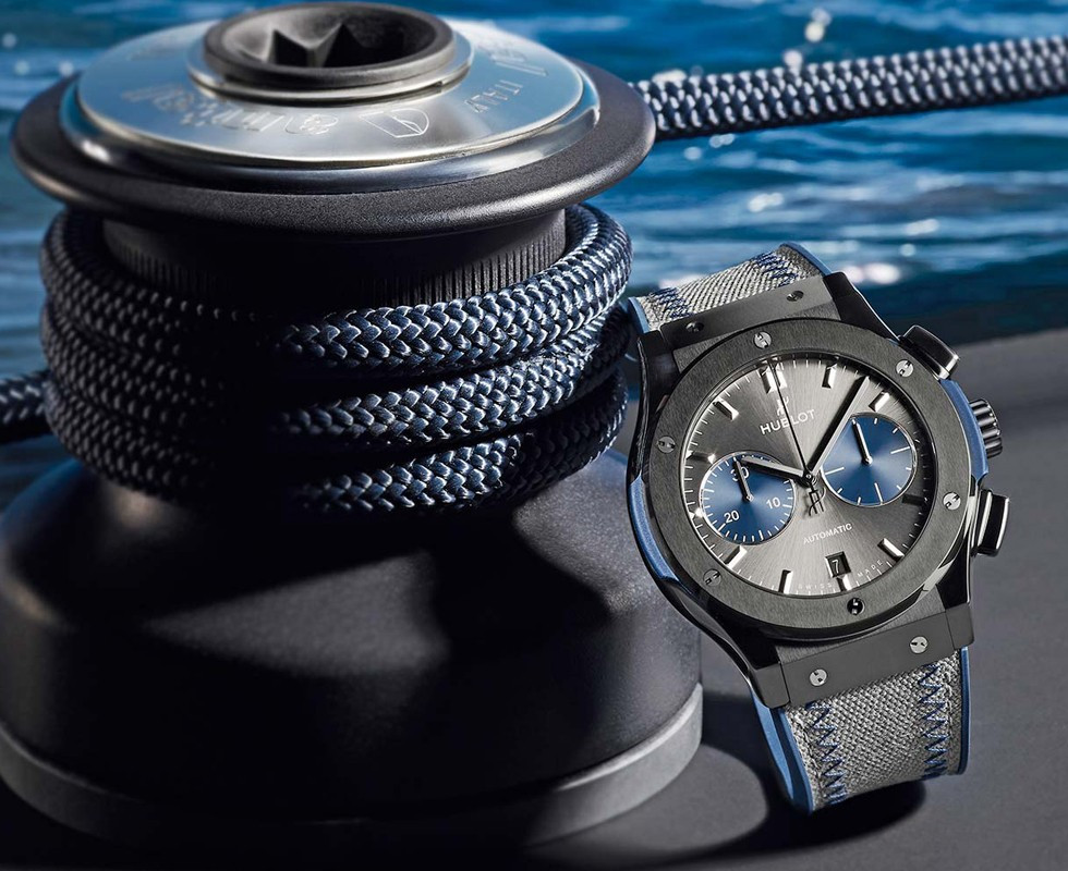Часы Hublot Classic Fusion Chronograph Bol d’Or Mirabaud представлены в корпусе из керамики размером 45 х 13 мм водонепроницаемостью 50 метров. Внутри корпуса установлен автоматический механизм, Калибр HUB1280, обладающий запасом хода 42 часа. На сером циферблате отображаются часы, минуты, секунды, дата, накопители хронографа. Часы поставляются на текстильном ремешке с титановой застежкой.
