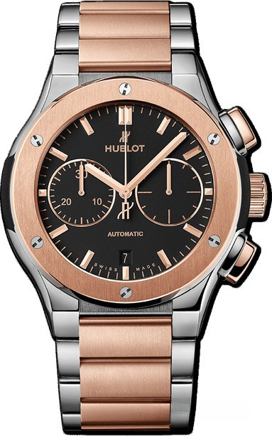 Часы Hublot Classic Fusion Chronograph Integrated Bracelet King Gold 42 mm представлены в корпусе из розового золота 18к и титана размером 45 мм и водонепроницаемостью 50 метров. Внутри корпуса установлен автоматический механизм, Калибр HUB1143, обладающий запасом хода 42 часа. На черном циферблате отображаются часы, минуты, секунды, дата, накопители хронографа. Часы поставляются на браслете из розового золота 18к и титана.