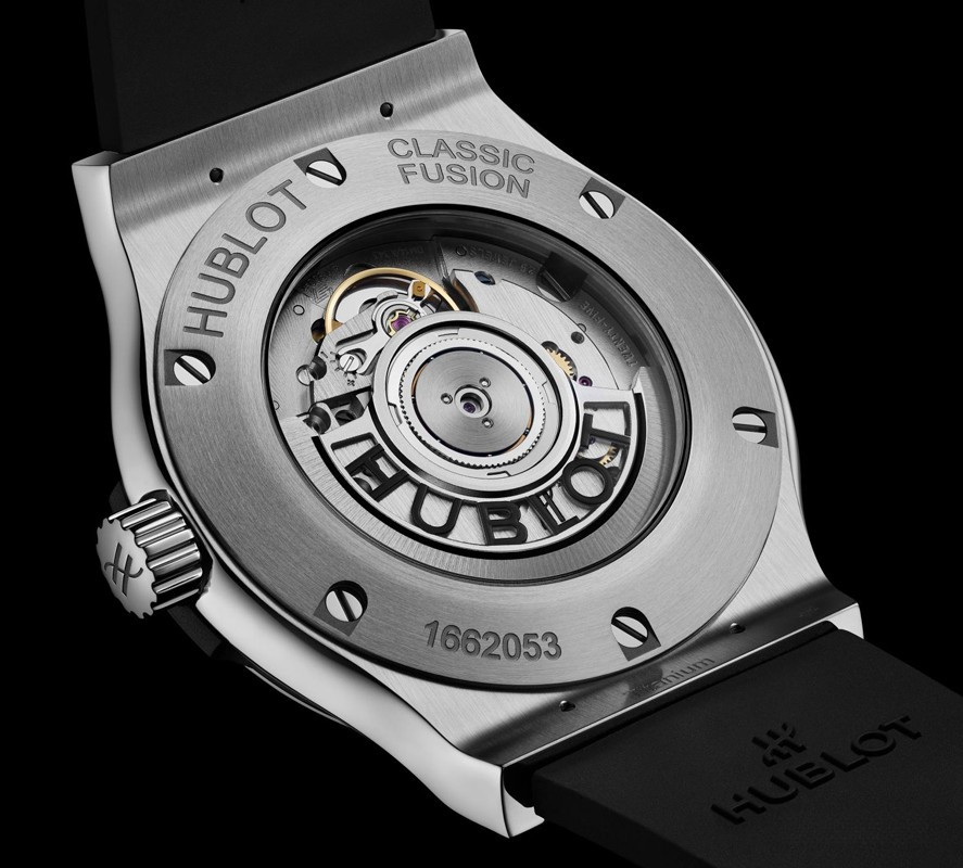 Часы Hublot Classic Fusion Original 42 mm представлены в корпусе из титана размером 42 мм водонепроницаемостью 50 метров. Внутри корпуса находится автоматический мехнизм, Калибр HUB1110, обладающий запасом хода 42 часа. На черном циферблате отображаются часы, минуты, секунды, дата. Часы поставляются на каучуковом ремешке с титановой застежкой. Серия ограничена - 500 шт.