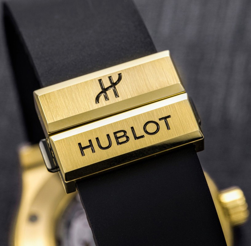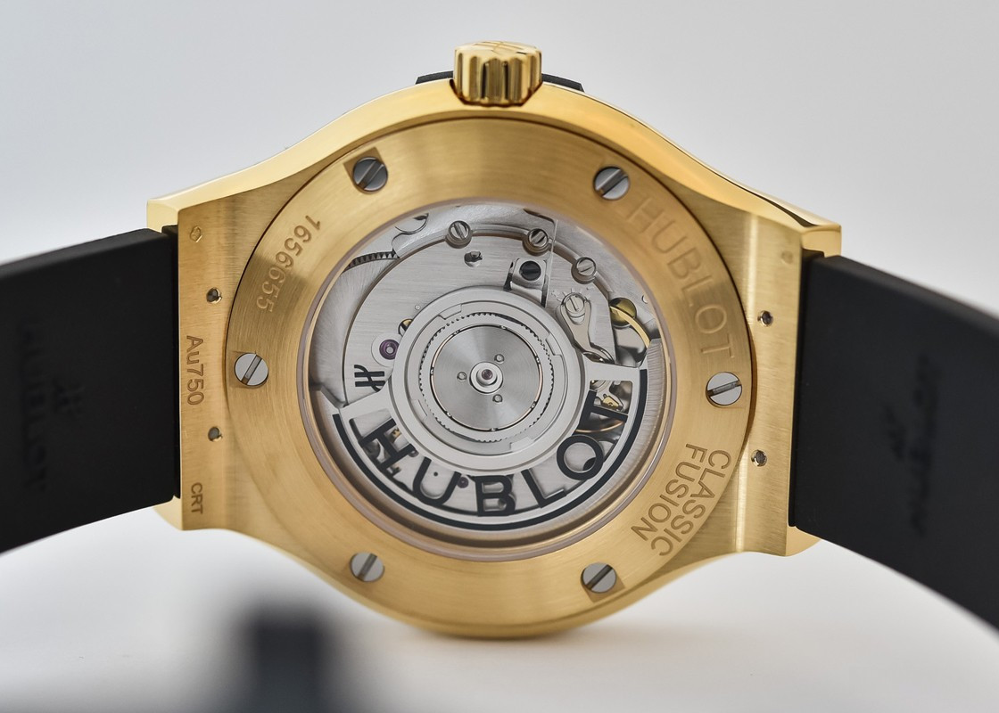 Часы Hublot Classic Fusion Original 42 mm представлены в корпусе из желтого золота 18к размером 42 мм водонепроницаемостью 50 метров. Внутри корпуса находится автоматический мехнизм, Калибр HUB1110, обладающий запасом хода 42 часа. На черном циферблате отображаются часы, минуты, секунды, дата. Часы поставляются на каучуковом ремешке с золотой застежкой. Серия ограничена - 500 шт.