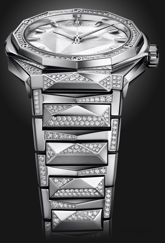 Часы Hublot Classic Fusion Orlinski 40 mm представлены в корпусе диаметром 40 мм из титана водонепроницаемостью 50 метров. Внутри корпуса установлен автоматический механизм, Калибр HUB1100, обладающий запасом хода 42 часа. На белом циферблате отображаются часы, минуты, секунды. Часы поставляются на титановом браслете, инкрустированном белыми бриллиантами. Корпус инкрустирован белыми бриллиантами.