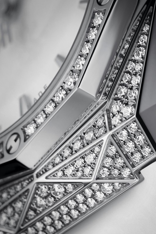водонепроницаемость 50 м, корпус инкрустирован белыми бриллиантами