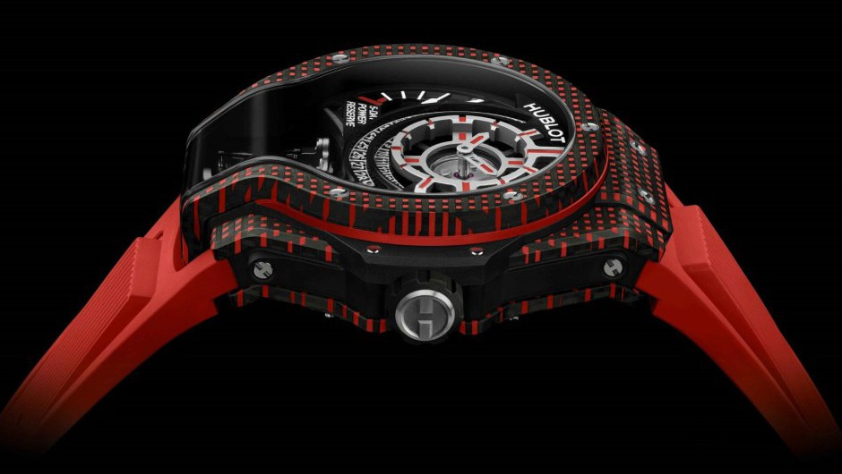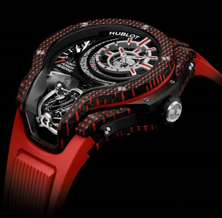 Креативность Hublot не знает границ. В своей новой модели MP-09 Tourbillon Bi-Axis мануфактура раздвигает рамки в понятии многоосных турбийонов. MP-09 Tourbillon Bi-Axis – результат идеи создать максимально просматриваемый турбийон, который вращается на двух осях. Новинка Hublot MP-09 Tourbillon Bi-Axis комплектуется автоматическим механизмом HUB9009.H1.RA.В с запасом хода 5 дней. Двухосный турбийон совершает один оборот за 1 минуту вокруг первой оси и за 30 секунд – вокруг второй. Турбийон постоянно находится в динамике. Захватывающим является также и дизайн корпуса. Стоит отметить, что механизм и корпус часов создавались специально один к одному. Турбийон расположен на 6-ти часах. Все индикаторы находятся в верхней части циферблата. Часовая и минутная стрелки расположены на 2-х часах. Этот дисплей объединен с ретроградной функцией даты. На 9-ти часах расположен индикатор запаса хода. Размер корпуса составляет 49 х 17.95 мм, водонепроницаемость корпуса 30 метров. Корпус часов изготовлен из карбона. Новинка комплектуется каучуковым ремешком с застежкой из кермики. Серия ограничена - 8 штук.