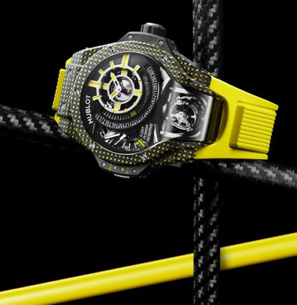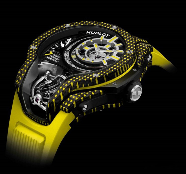 Креативность Hublot не знает границ. В своей новой модели MP-09 Tourbillon Bi-Axis мануфактура раздвигает рамки в понятии многоосных турбийонов. MP-09 Tourbillon Bi-Axis – результат идеи создать максимально просматриваемый турбийон, который вращается на двух осях. Новинка Hublot MP-09 Tourbillon Bi-Axis комплектуется автоматическим механизмом HUB9009.H1.RA.В с запасом хода 5 дней. Двухосный турбийон совершает один оборот за 1 минуту вокруг первой оси и за 30 секунд – вокруг второй. Турбийон постоянно находится в динамике. Захватывающим является также и дизайн корпуса. Стоит отметить, что механизм и корпус часов создавались специально один к одному. Турбийон расположен на 6-ти часах. Все индикаторы находятся в верхней части циферблата. Часовая и минутная стрелки расположены на 2-х часах. Этот дисплей объединен с ретроградной функцией даты. На 9-ти часах расположен индикатор запаса хода. Размер корпуса составляет 49 х 17.95 мм, водонепроницаемость корпуса 30 метров. Корпус часов изготовлен из карбона. Новинка комплектуется каучуковым ремешком с застежкой из кермики. Серия ограничена - 8 штук.