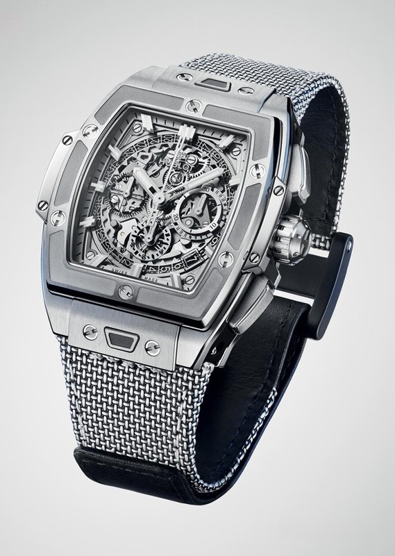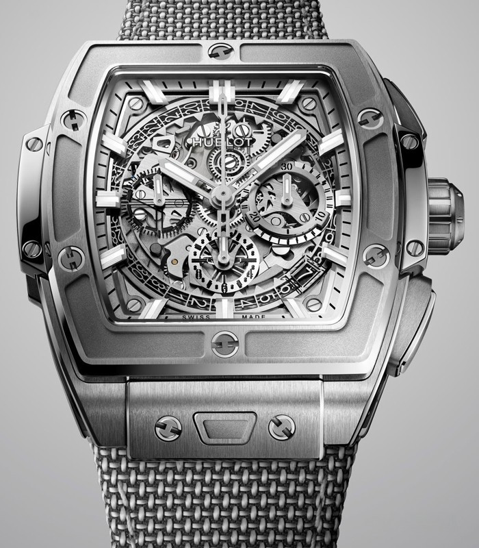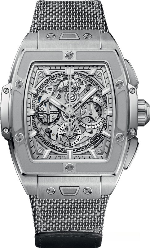 Часы Hublot Spirit of Big Bang Chronograph 42 mm представлены в корпусе размером 42 мм из титана водонепроницаемостью 100 метров. Внутри корпуса установлен автоматический механизм, Калибр HUB4700, обладающий запасом хода 50 часов. На серебристом циферблате отображаются часы, минуты, секунды, дата. Часы поставляются на текстильном ремешке с титановой застежкой.