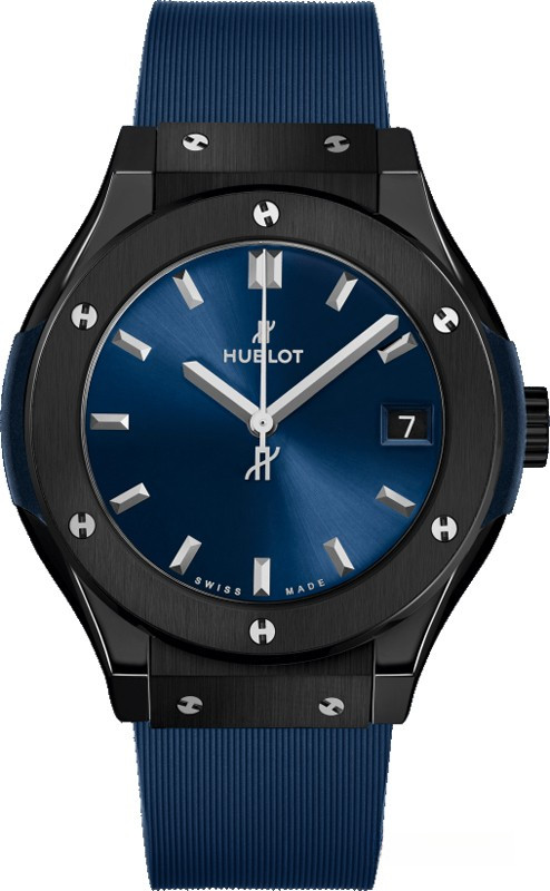Часы Hublot Classic Fusion Automatic 33 mm выпущены в корпусе из керамики размером 33 мм и водонепроницаемостью 50 м. Внутри корпуса установлен автоматический Калибр HUB1120 с запасом хода 40 часов. На синем циферблате отображаются часы, минуты, секунды, дата. Часы комплектуются каучуковым ремешком с титановой застежкой.