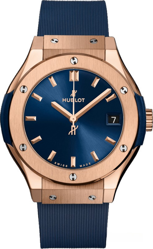 Часы Hublot Classic Fusion Automatic 33 mm выпущены в корпусе из розового золота 18к размером 33 мм и водонепроницаемостью 50 м. Внутри корпуса установлен автоматический Калибр HUB1120 с запасом хода 40 часов. На синем циферблате отображаются часы, минуты, секунды, дата. Часы комплектуются каучуковым ремешком с золотой застежкой.