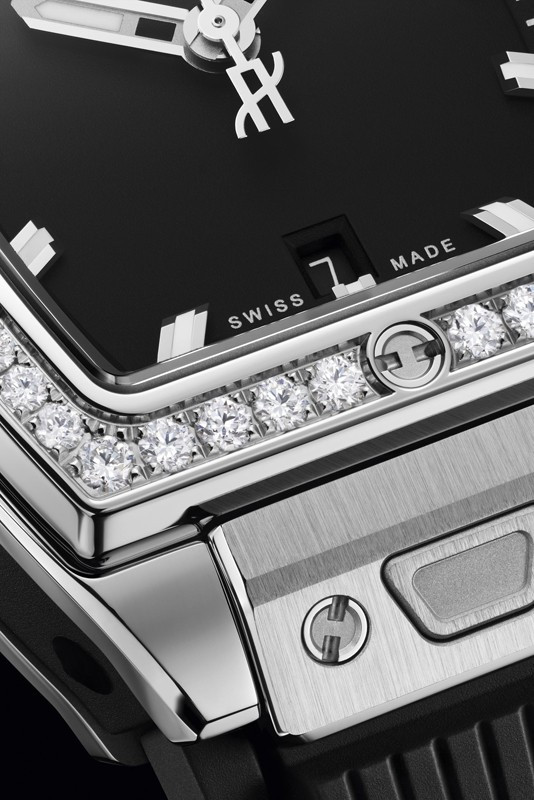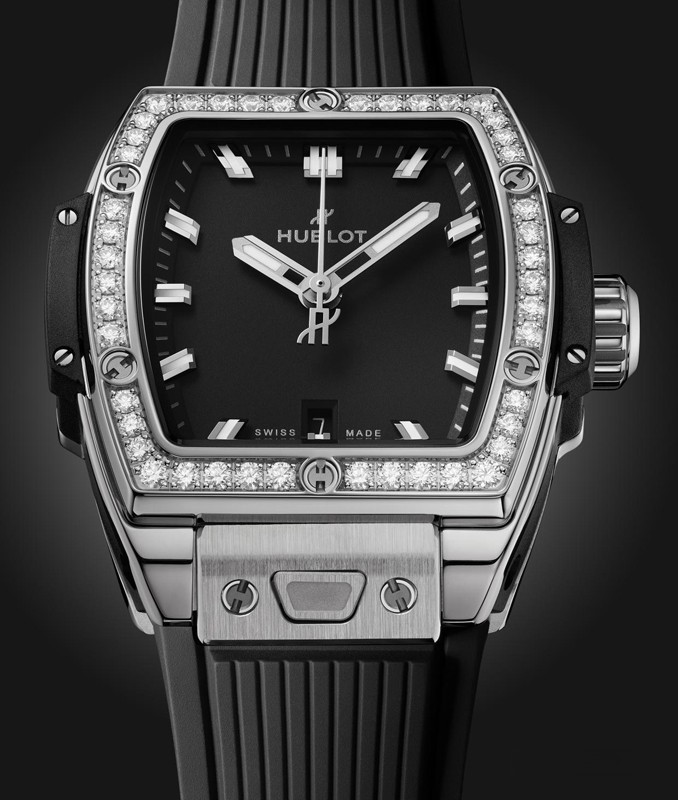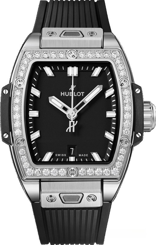 Часы Hublot Spirit of Big Bang 32 mm представлены в корпусе из нержавеющей стали размером 32 мм и водонепроницаемостью до 100 метров. Внутри корпуса установлен автоматический механизм, Калибр HUB1120 с запасом хода 40 часов. На черном циферблате отображаются часы, минуты, секунды, дата. Часы комплектуются каучуковым ремешком с застежкой из нержавеющей стали. Безель из белых бриллиантов.