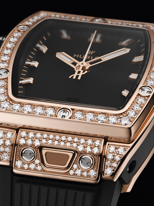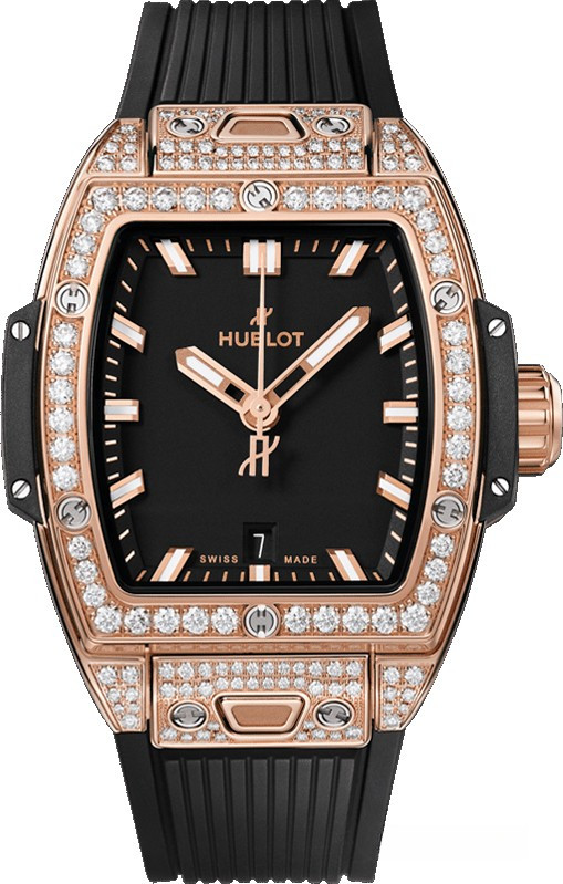 Часы Hublot Spirit of Big Bang 32 mm представлены в корпусе из розового золота 18к размером 32 мм и водонепроницаемостью до 100 метров. Внутри корпуса установлен автоматический механизм, Калибр HUB1120 с запасом хода 40 часов. На черном циферблате отображаются часы, минуты, секунды, дата. Часы комплектуются каучуковым ремешком с золотой застежкой. Корпус инкрустирован белыми бриллиантами.
