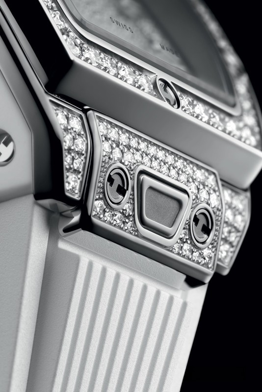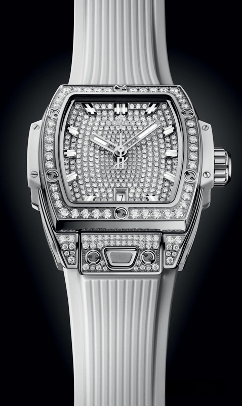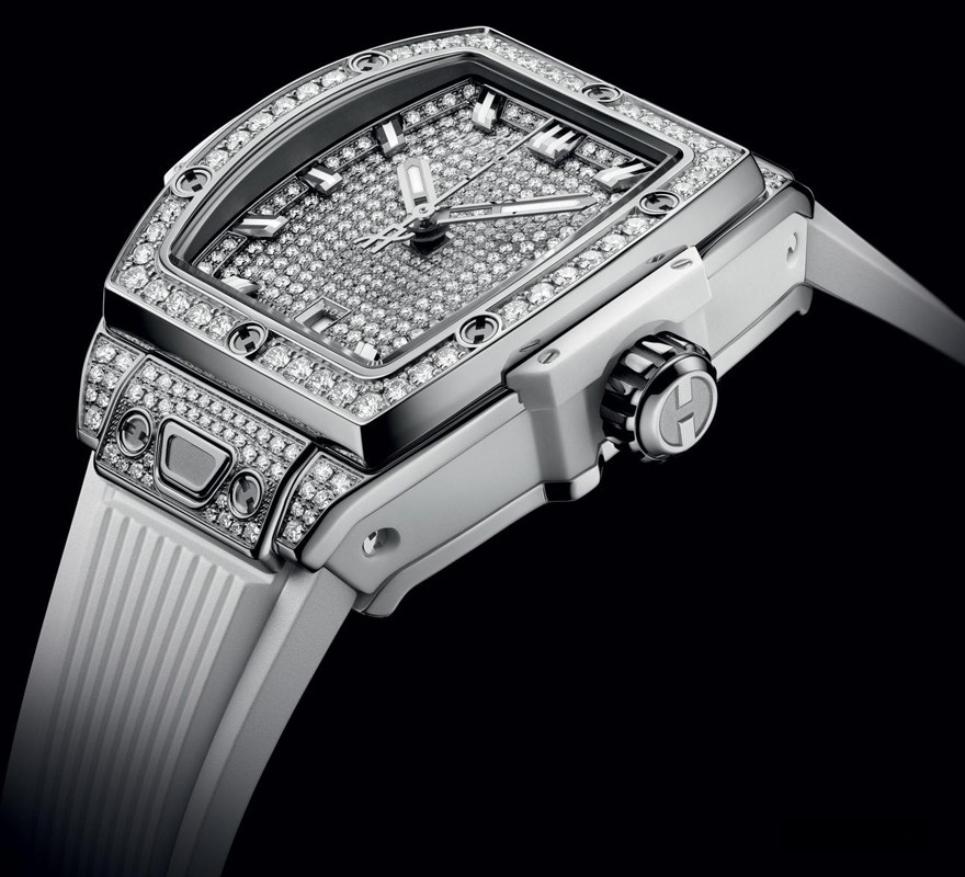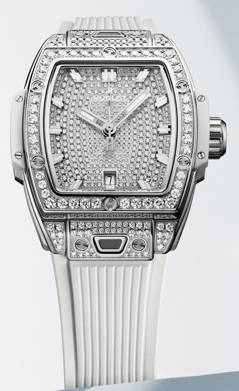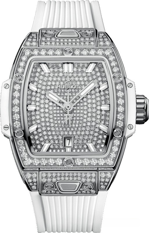 Часы Hublot Spirit of Big Bang 32 mm представлены в корпусе из нержавеющей стали размером 32 мм и водонепроницаемостью до 100 метров. Внутри корпуса установлен автоматический механизм, Калибр HUB1120 с запасом хода 40 часов. На циферблате с белыми бриллиантами отображаются часы, минуты, секунды, дата. Часы комплектуются каучуковым ремешком с застежкой из нержавеющей стали. Корпус инкрустирован белыми бриллиантами.